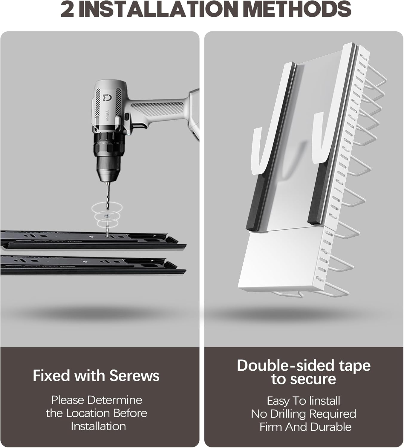 - 【Raising Pads For Framed Cabinets】:Equipped with innovative raising pads, this pots and pans organizer ensures compatibility with both framed and frameless cabinets. Enjoy hassle-free installation without compromising on functionality or design. Note: Compatible with Framed Cabinets with Edge Heights up to 0.4 Inches.