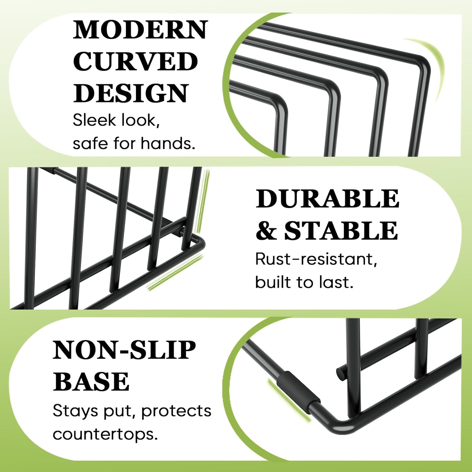 - ๐๐ง๐ญ๐ข-๐๐ฅ๐ข๐ฉ ๐๐ข๐ฅ๐ข๐๐จ๐ง๐ ๐ ๐๐๐ญ ๐๐จ๐ซ ๐๐๐๐ฎ๐ซ๐ ๐๐ฅ๐๐๐๐ฆ๐๐ง๐ญ: Stay worry-free with silicone-coated feet that grip any surface and prevent shifting. Whether placed on your countertop or inside a cabinet, this bakeware rack stays stable while protecting surfaces from scratches and scuffs.