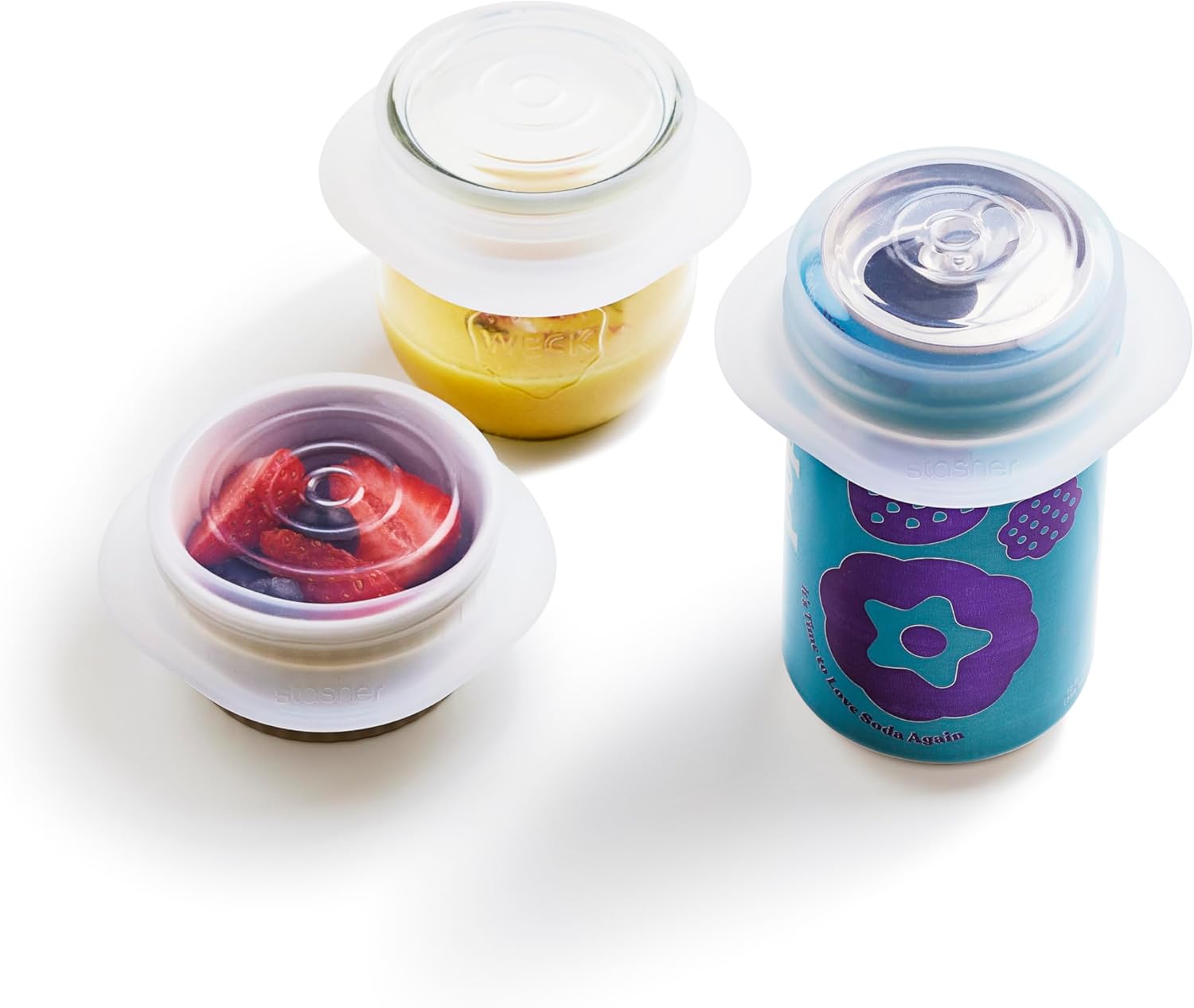 - BETTER WAY TO WRAP LEFTOVERS TO MINIMIZE PLASTIC: Say goodbye to single-use plastic wrap! Our newly released stretch lids are the perfect food storage alternative that reduces plastic waste in the kitchen. The Stasher Reusable Silicone Stretch Lids Small 3-Pack contains three 2.5” lids to form an airtight seal, keeping food fresh for longer.