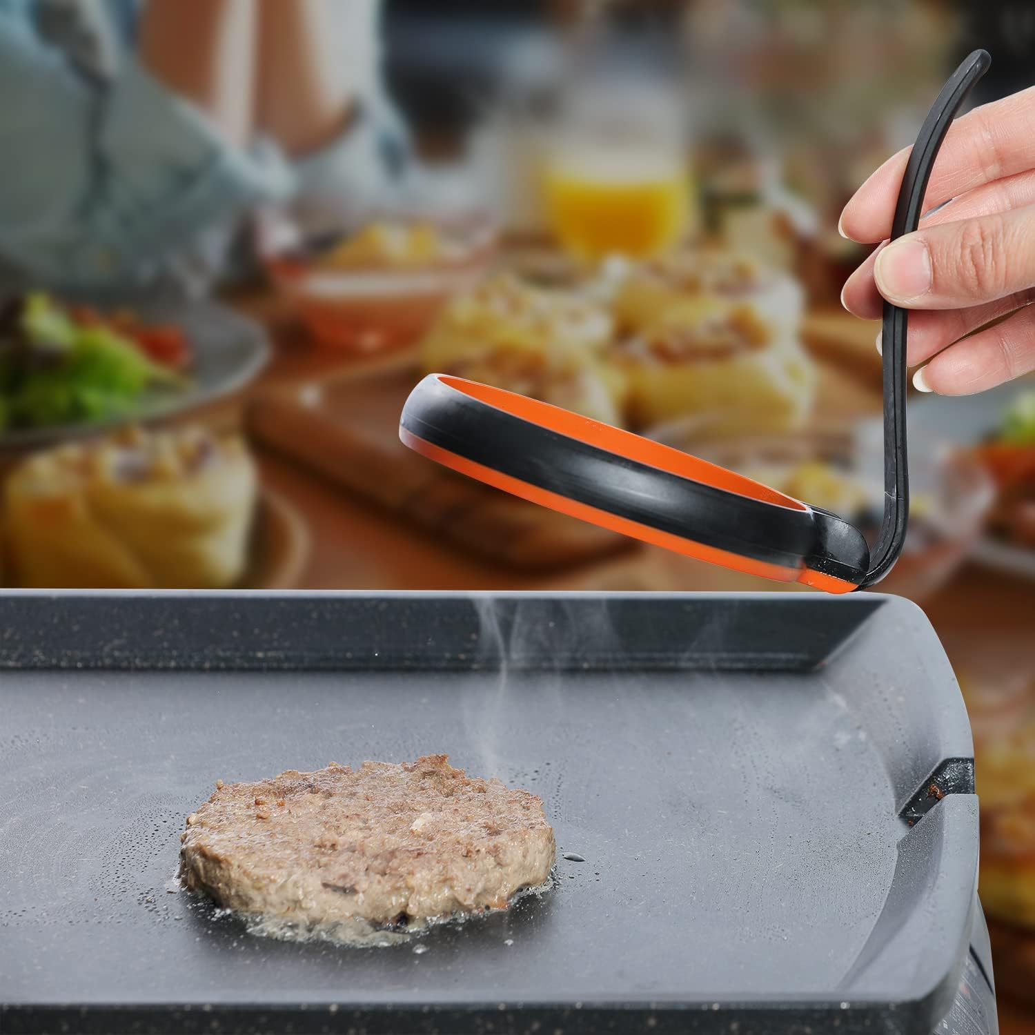 - Silicone Egg Rings: 4pcs Silicone egg rings, 3.5 inch in diameter and 0.8 inch in deep of silicone egg cookers for making homemade omelets, hamburgers, dessert, breads, pastry, jelly, crumpets, fried eggs, pancakes, fritters, etc. just use your creativity to make delicious breakfast sandwiches or hamburger with English muffin or bread for your family.