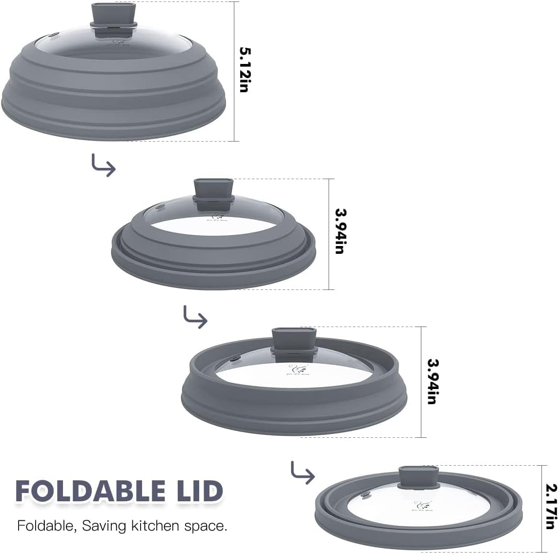 Microwave Splatter Cover Glass Cover Guard Lid with Collapsible Silicone for Food Pot Plate Cover 9.8 inch Light Grey