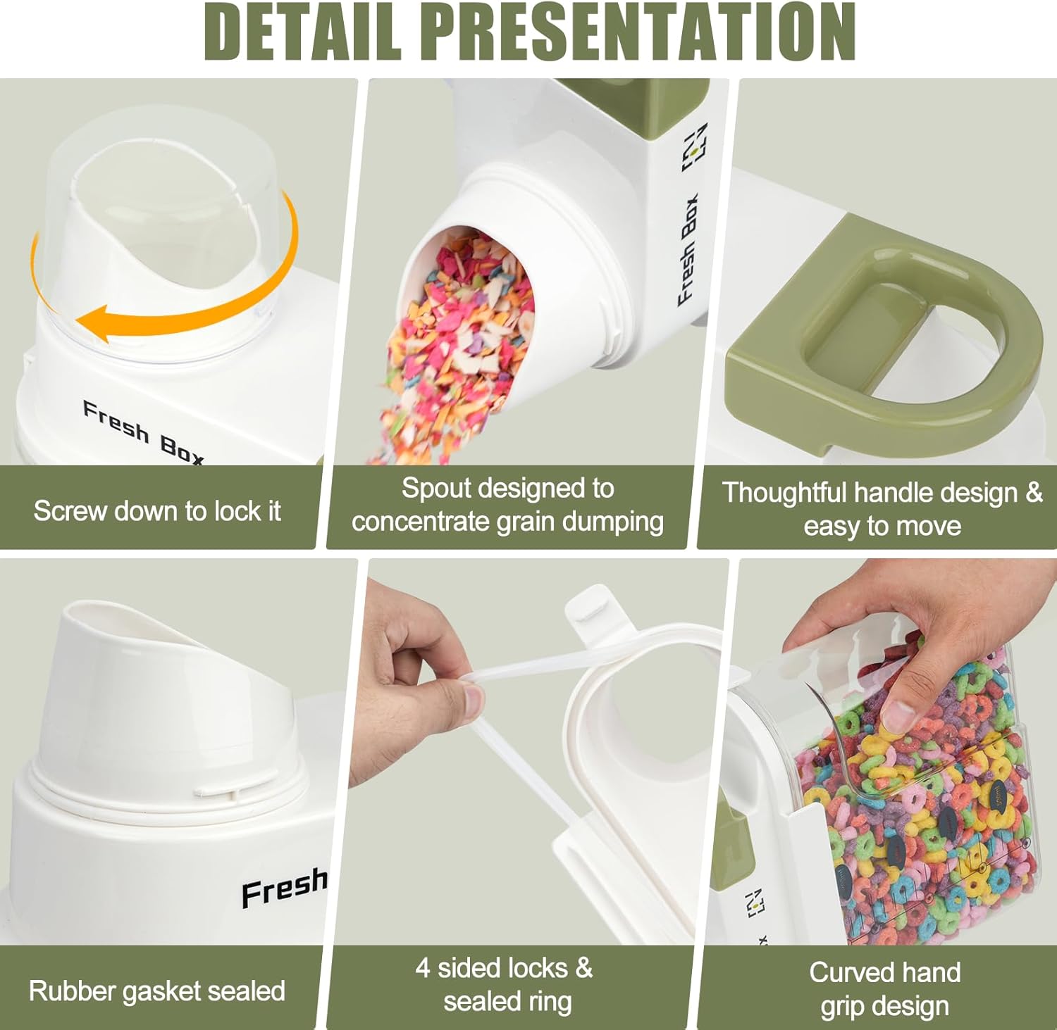 - Food Grade Materials: Crafted from high-quality, food grade materials, these clear rice containers storage dispensers are designed to be safe for storing dry food. Package includes: 1pcs cereal dispenser
