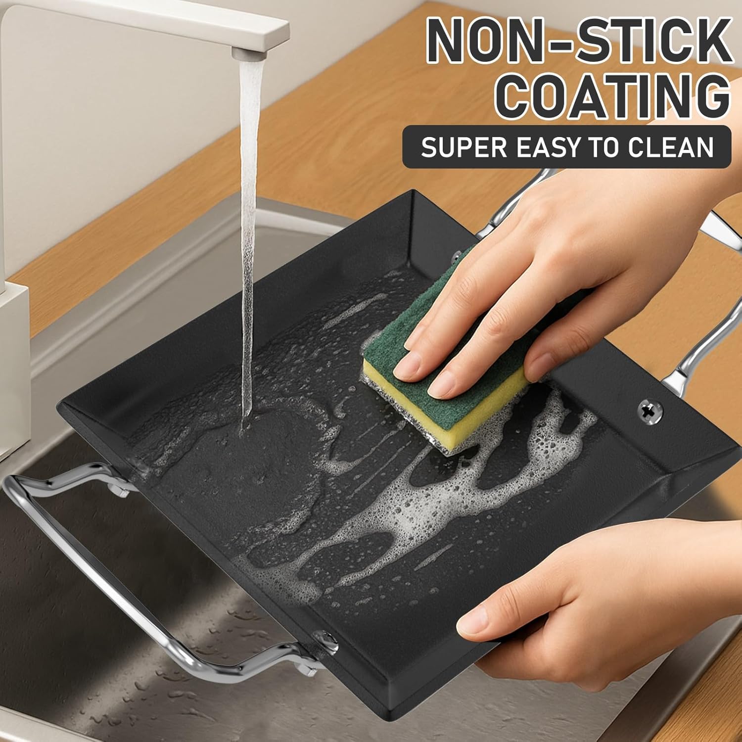 - Reliable & Long-Lasting: Built with an upgraded, durable nonstick coating, this cast iron griddle resists flaking, peeling, and wear. It delivers consistent food release and easy cleanup, even after repeated high-heat use—ideal for serious cooks who need dependable performance.