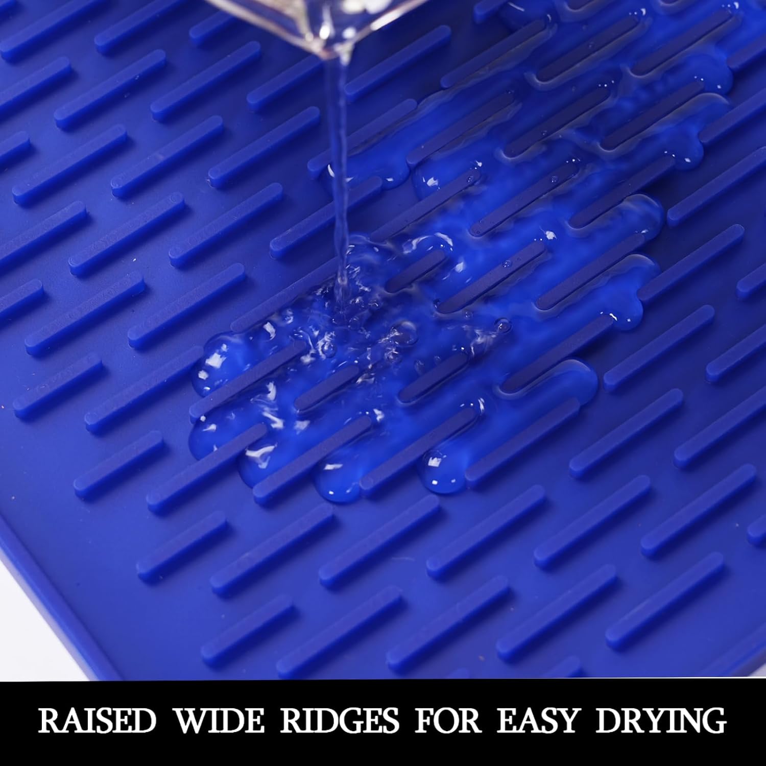 - MULTIPLE USAGE: This drying mat wide raised ridges, dry faster and water evaporates quickly. For dishes, glassware, plates, bowls, silverware, stemware, pans, spatulas, cutlery, and more on the kitchen countertop.
