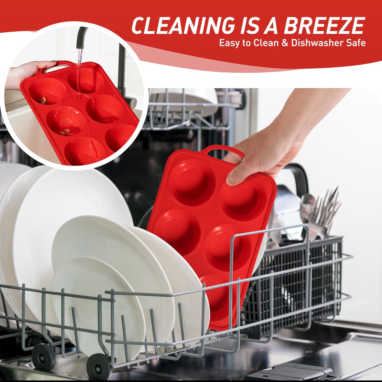 - 【Food Grade Silicone Muffin Tray】Safe for the oven, microwave, dishwasher, fridge, and freezer. With an impressive heat resistance range from -104°F to 446°F, it’s perfect for all your favorite baked goods. Oven-safe handles withstand repeated baking cycles without cracking, unlike cheaper silicone baking cupcake muffin pan with plastic components. Food grade silicone of our muffin pan with anti fouling and anti staining properties, tested over 1000 times and still maintains 99% freshness.