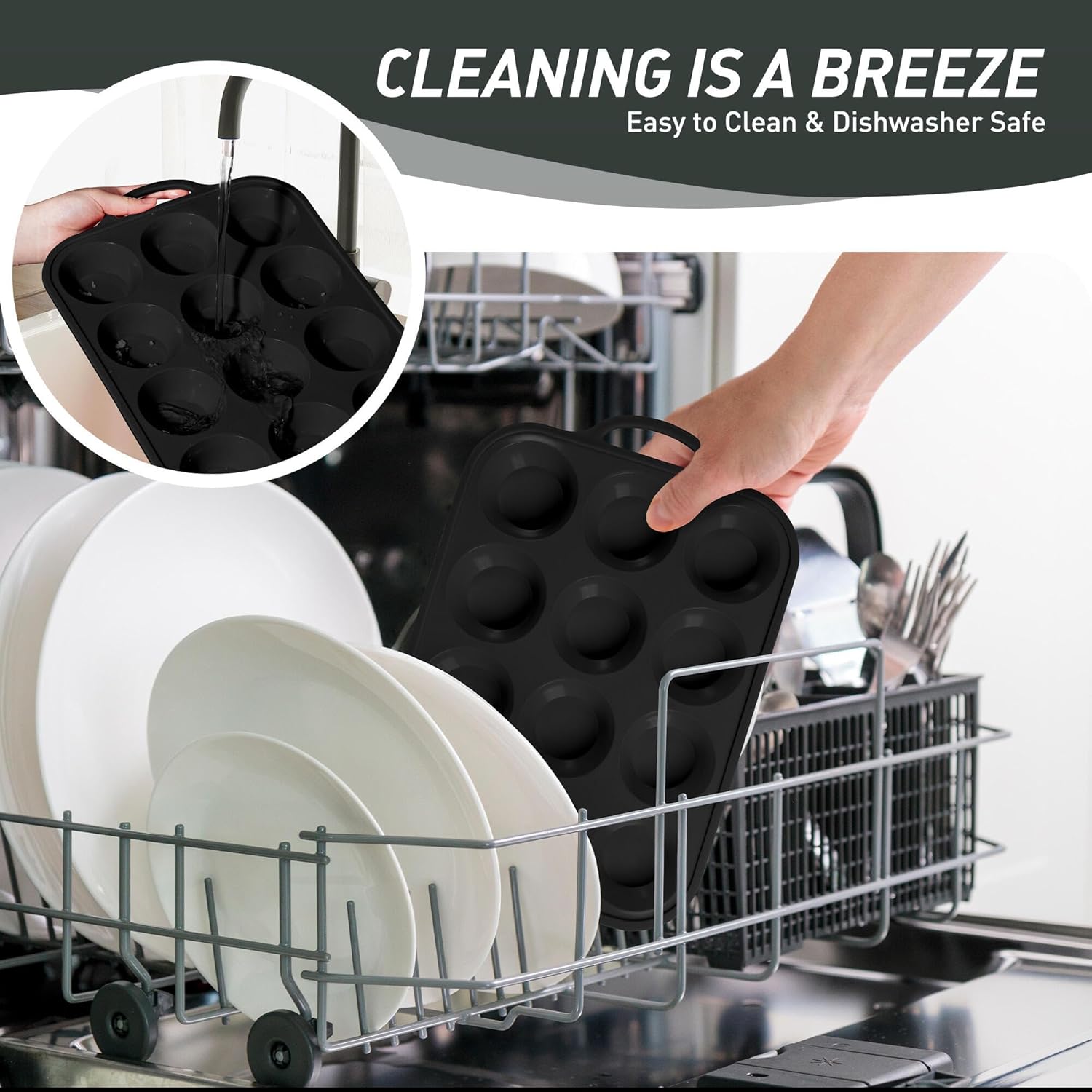- 【Food Grade Silicone Muffin Tray】Safe for the oven, microwave, dishwasher, fridge, and freezer. With an impressive heat resistance range from -104°F to 446°F, it’s perfect for all your favorite baked goods. Oven-safe handles withstand repeated baking cycles without cracking, unlike cheaper silicone baking cupcake muffin pan with plastic components. Food grade silicone of our muffin pan with anti fouling and anti staining properties, tested over 1000 times and still maintains 99% freshness.