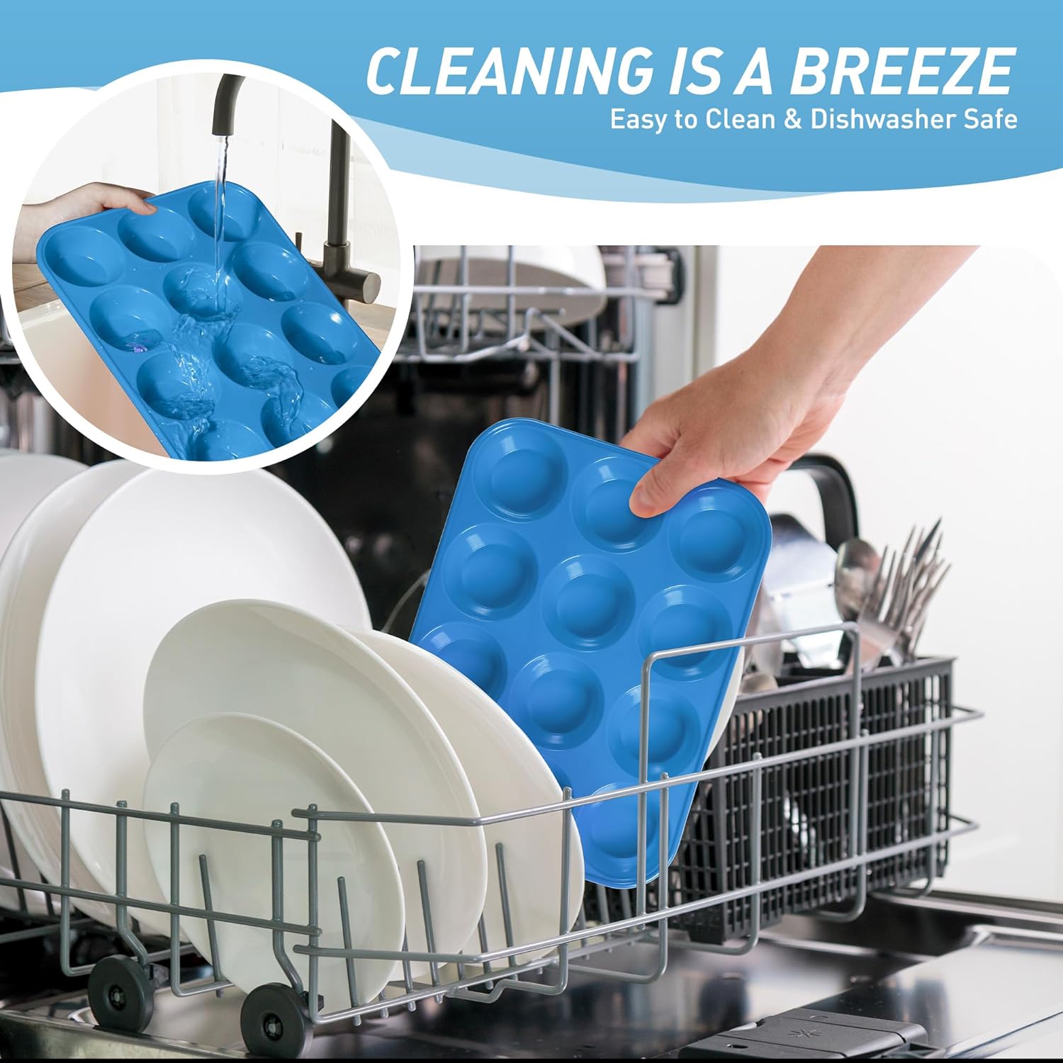 - Food Grade Silicone Muffin Tray: Safe for the oven, microwave, dishwasher, fridge, and freezer. With an impressive heat resistance range from -104°F to 446°F, it’s perfect for all your favorite baked goods. thick walls prevent heat transfer to countertops – safer than other thin plastic baking cupcake muffin pans. Food grade silicone of our baking cupcake muffin pans, maintaining 99% "like-new" appearance after heavy use.