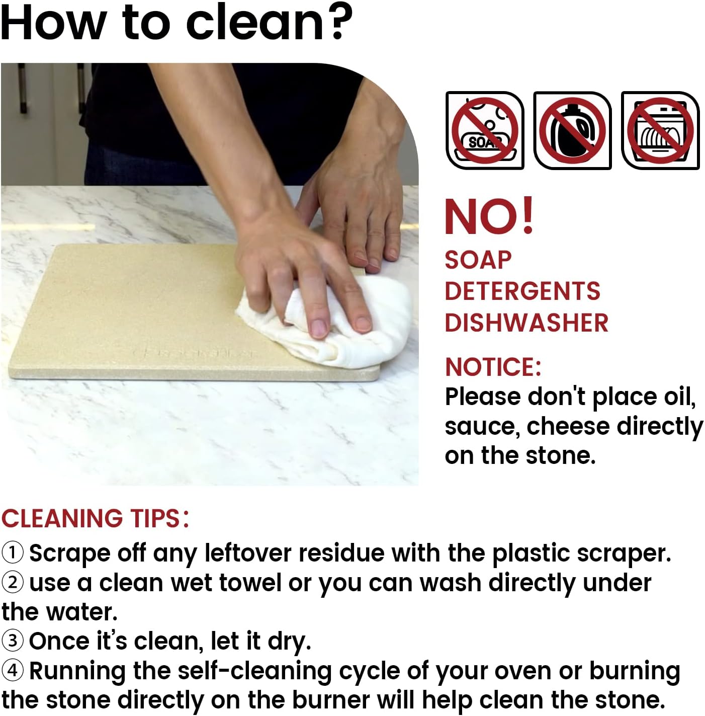 - FOOD GRADE STONEWARE. The bread baking stone is burnt in 2200℉ kiln, it does not encompass any harmful substance or odor.