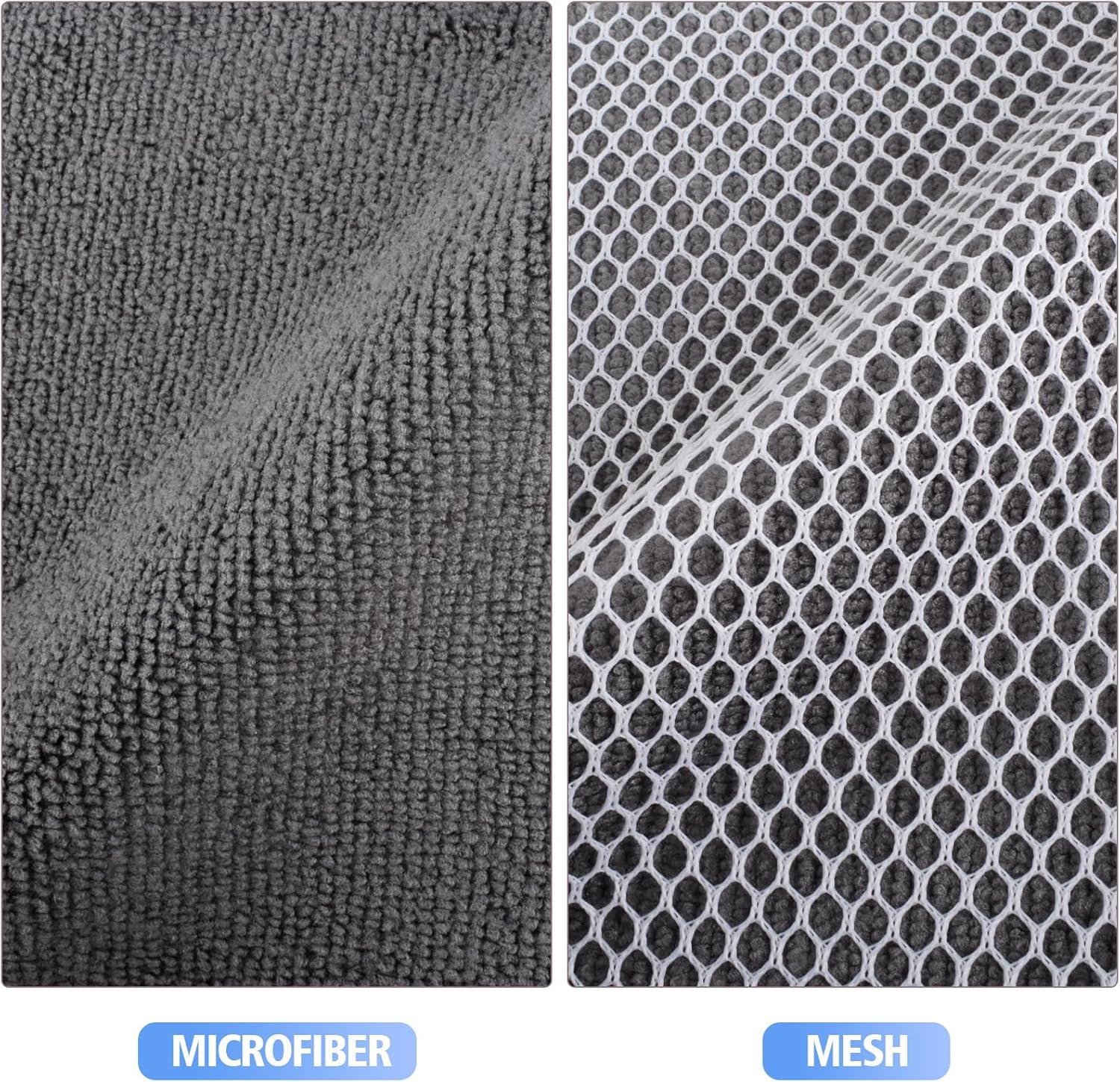- DISH RAGS FOR KITCHEN CLEANING WITH POLY SCOUR SCRUBBING SIDE: One side is microfiber and the other side is mesh. The microfiber side works well at getting finger spots off the stainless steel appliances and the glass front of fridge or stove, microwave; the scrubby side is good for cleaning stuck on food without having to grab your scraper and does not scratch delicate surfaces either