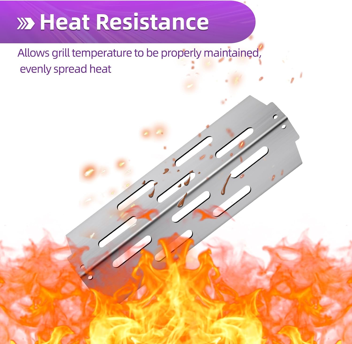 - 【Heat Evenly & Easy to Clean】Our grill parts made with heavy duty 304 stainless steel to ensure long lasting use which can distribute heat evenly across entire surface. The heat deflector not only heat evenly and retain heat superbly but also deliver professional searing able to produce prominent sear marks and make the food more flavorful. After using the cooking grill parts, just use a grill scrubber and put it into water to soak. very easy to clean.