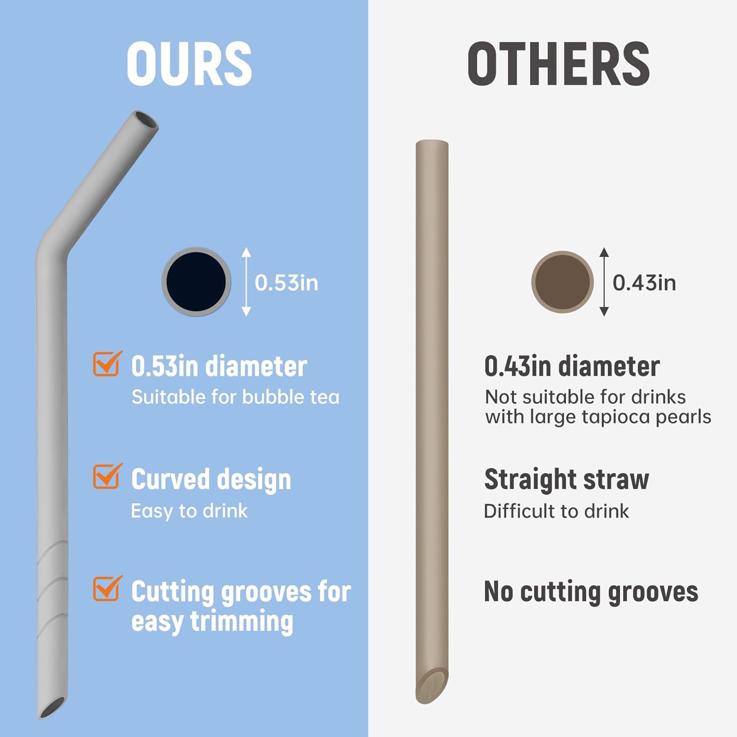 - Wider Diameter for Thick Drinks: Designed with a 0.39" inner diameter, these silicone straws make it easy to enjoy bubble tea, smoothies, and milkshakes. Sip large tapioca pearls and thick beverages effortlessly without clogging.