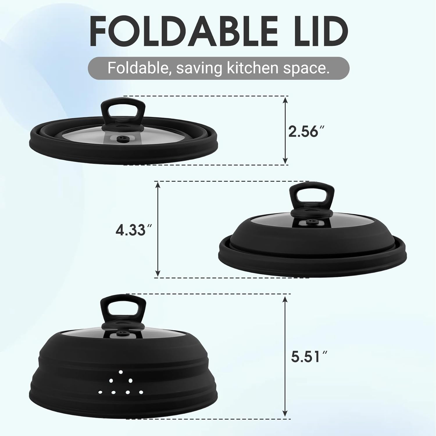 Microwave Splatter Cover Collapsible Silicone & Tempered Glass 10.8 Inch Microwave Cover for Food Splatter Guard with Steam Vents Dishwasher Safe Fits Bowls, Plates & Pots (Black)