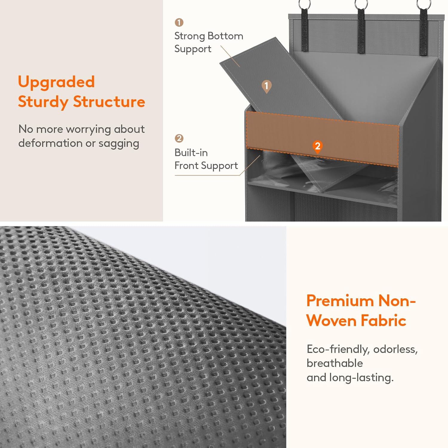 - Premium Material & Sturdy Structure: Lifewit hanging over the door organizer is crafted from high-quality non-woven fabric, making it odorless, breathable, and tear-resistant. The thickened cardboard support insert ensures its sturdy structure and anti-tilt, with a heavy load of 40 lbs(18kg), perfect for long-term use