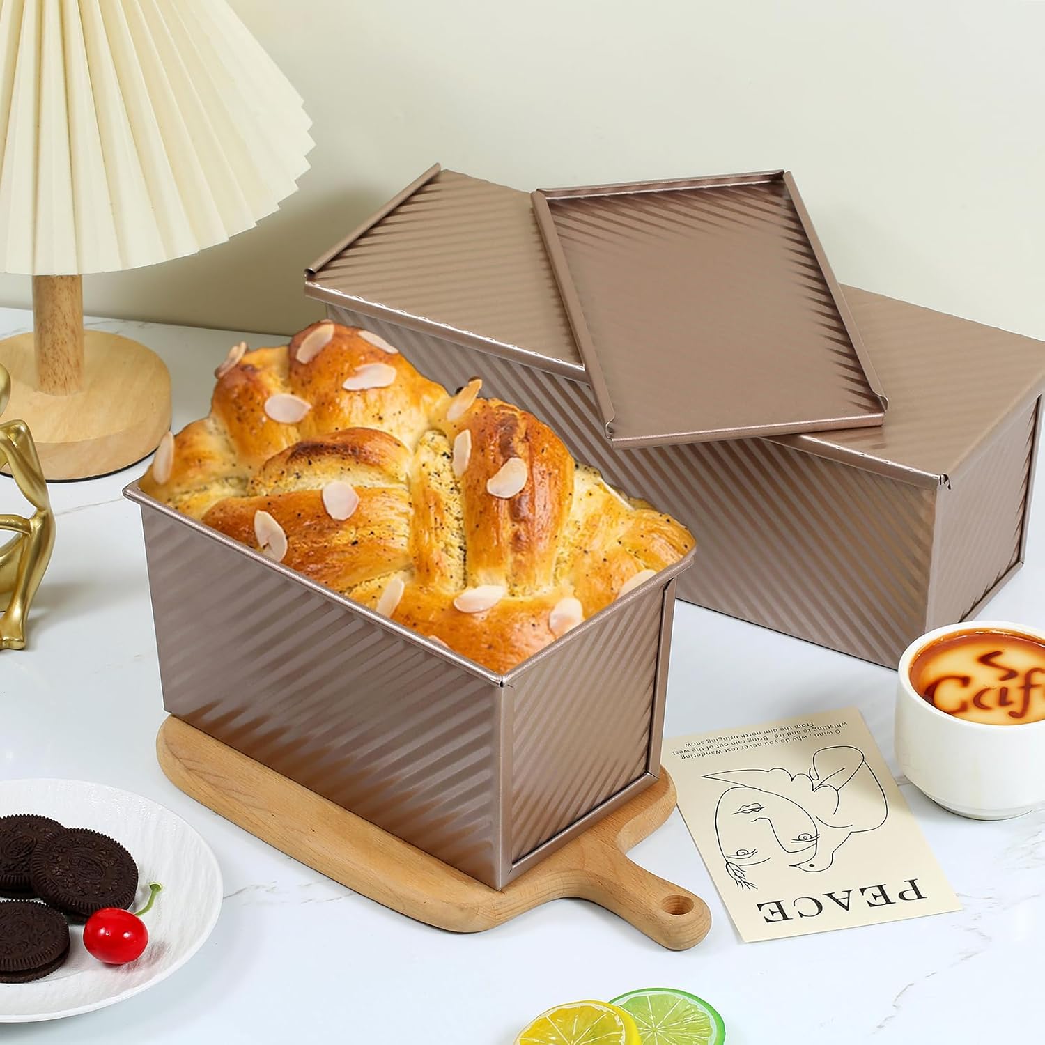 SS&CC Pullman Loaf Pan with Lid 2-Pack, 2.2lb & 1lb Carbon Steel Bread Pan for Homemade Sourdough & Sandwich Bread | Nonstick Bakeware, Heavy Duty & Easy Clean (Gold, 1lb+2.2lb)