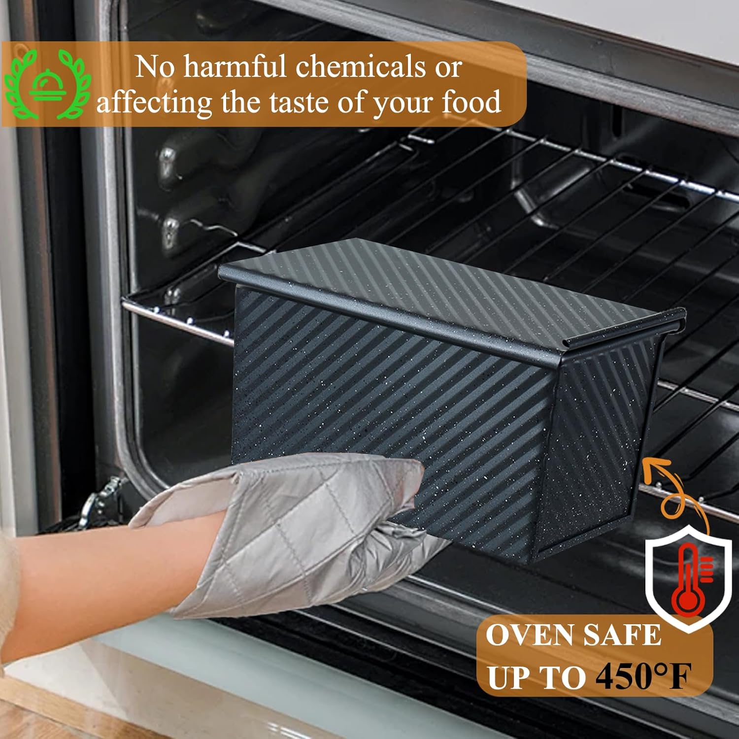 - PREMIUM NONSTCK & EASY CLEAN: Enhanced food-safe PTFE/PFOA-free nonstick coating ensures effortless bread release from bread pan with lid. It is perfect for baking sandwich bread, Japanese milk bread, gluten-free loaves, sourdough, and more.