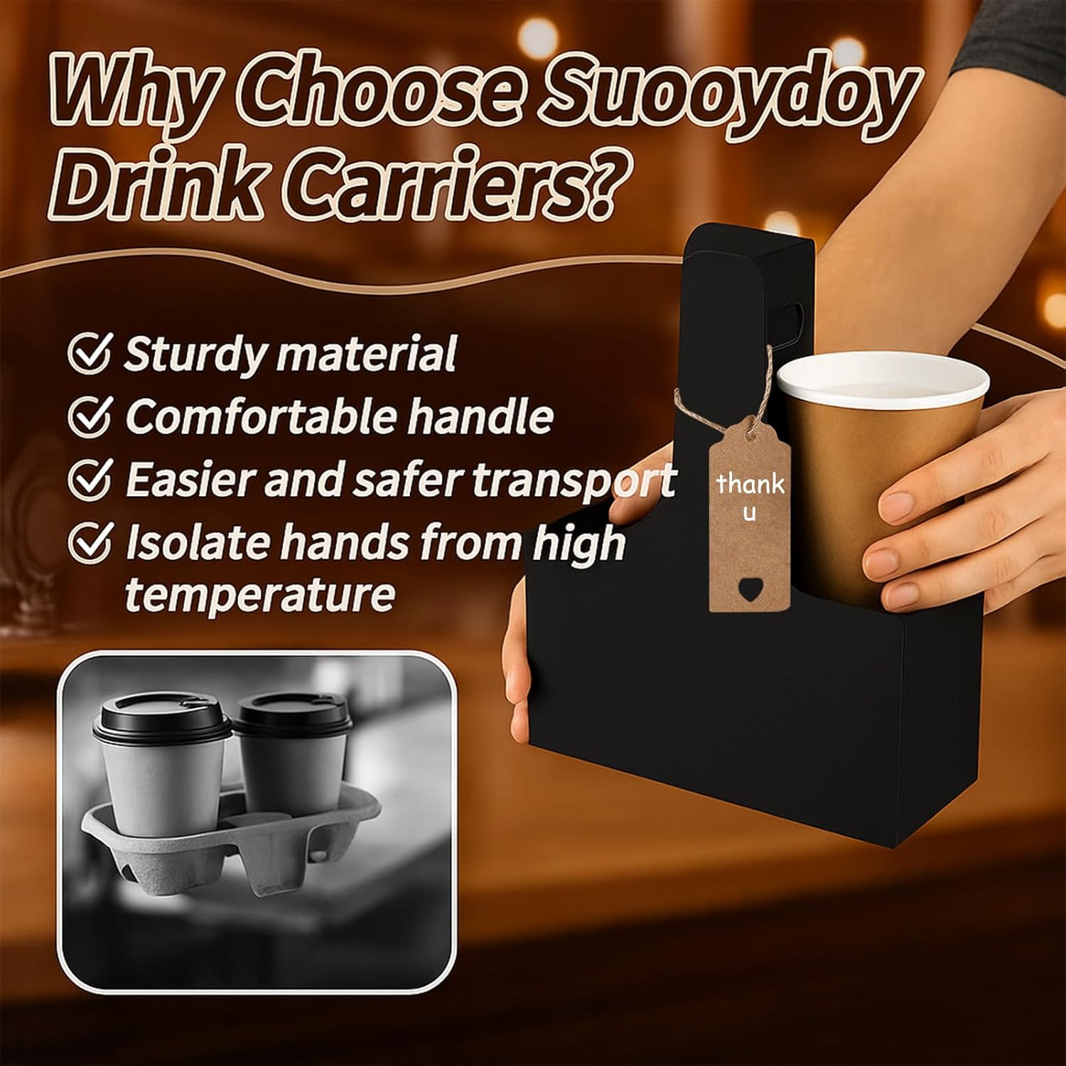 - Sufficient quantity: Our coffee holder package contains a total of 10 black cardboard two-cup drink holders, and also comes with love cards and rope. You can write their message or wishes on the card and place them on the paper cup holder with the rope. It is suitable for Teacher Appreciation Week and Mother's Day, Valentine's Day and other festivals
