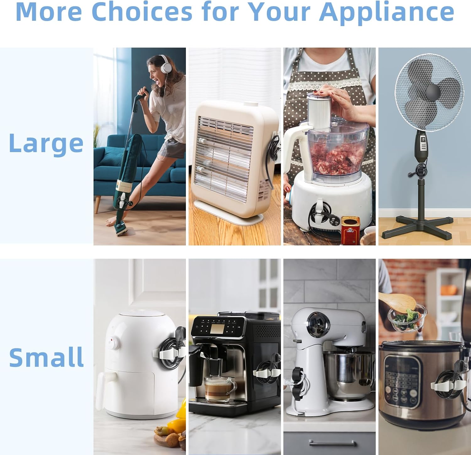 - Wide Application: Our cord organizers are compatible with a wide range of kitchen and household appliances, including coffee machines, air fryers, mixers, blenders, pressure cookers, toasters, juicers, and more. The wire wrapper is with strong self-adhesive, suitable for various surfaces such as metal, tiles, glass, ceramics, wood, plastic, etc