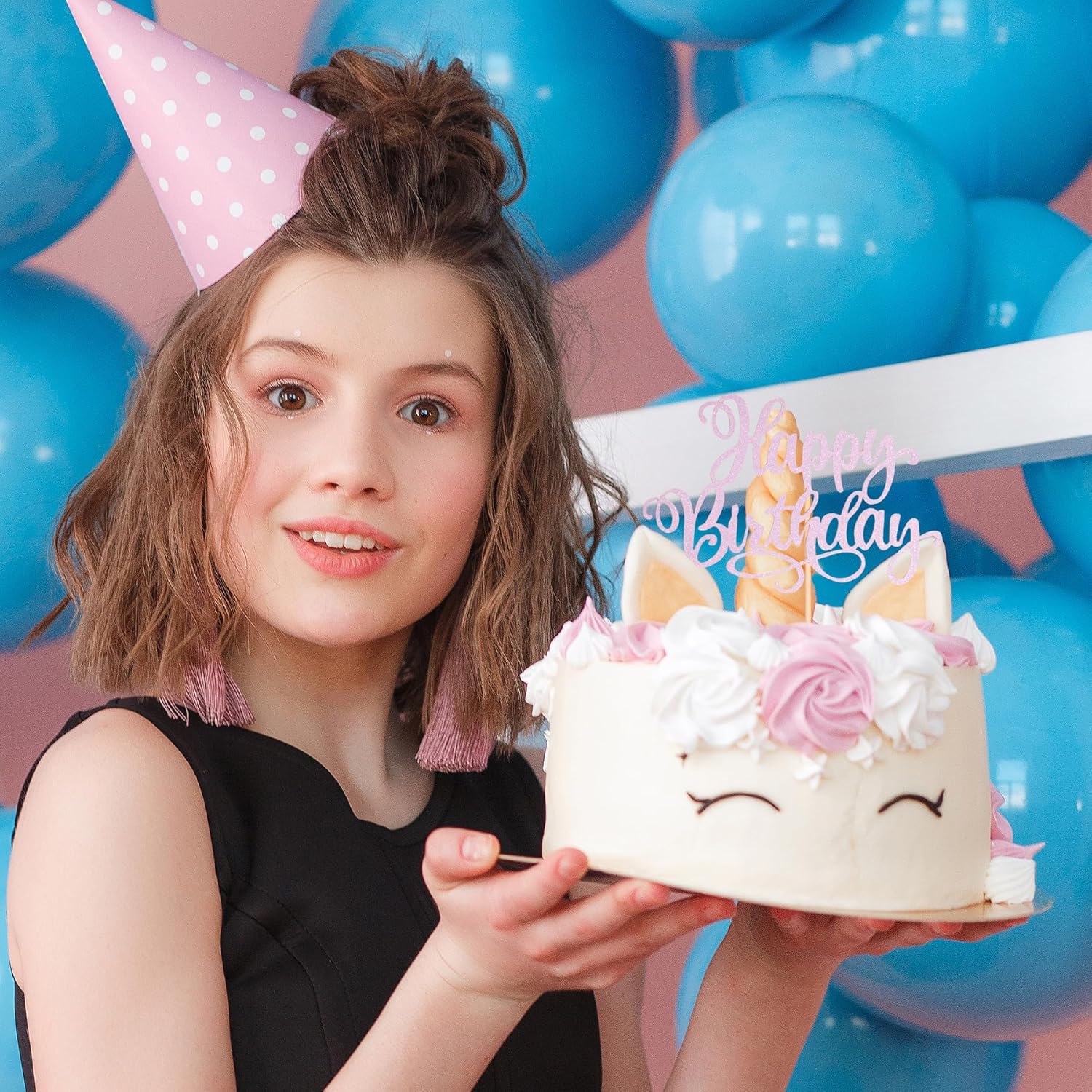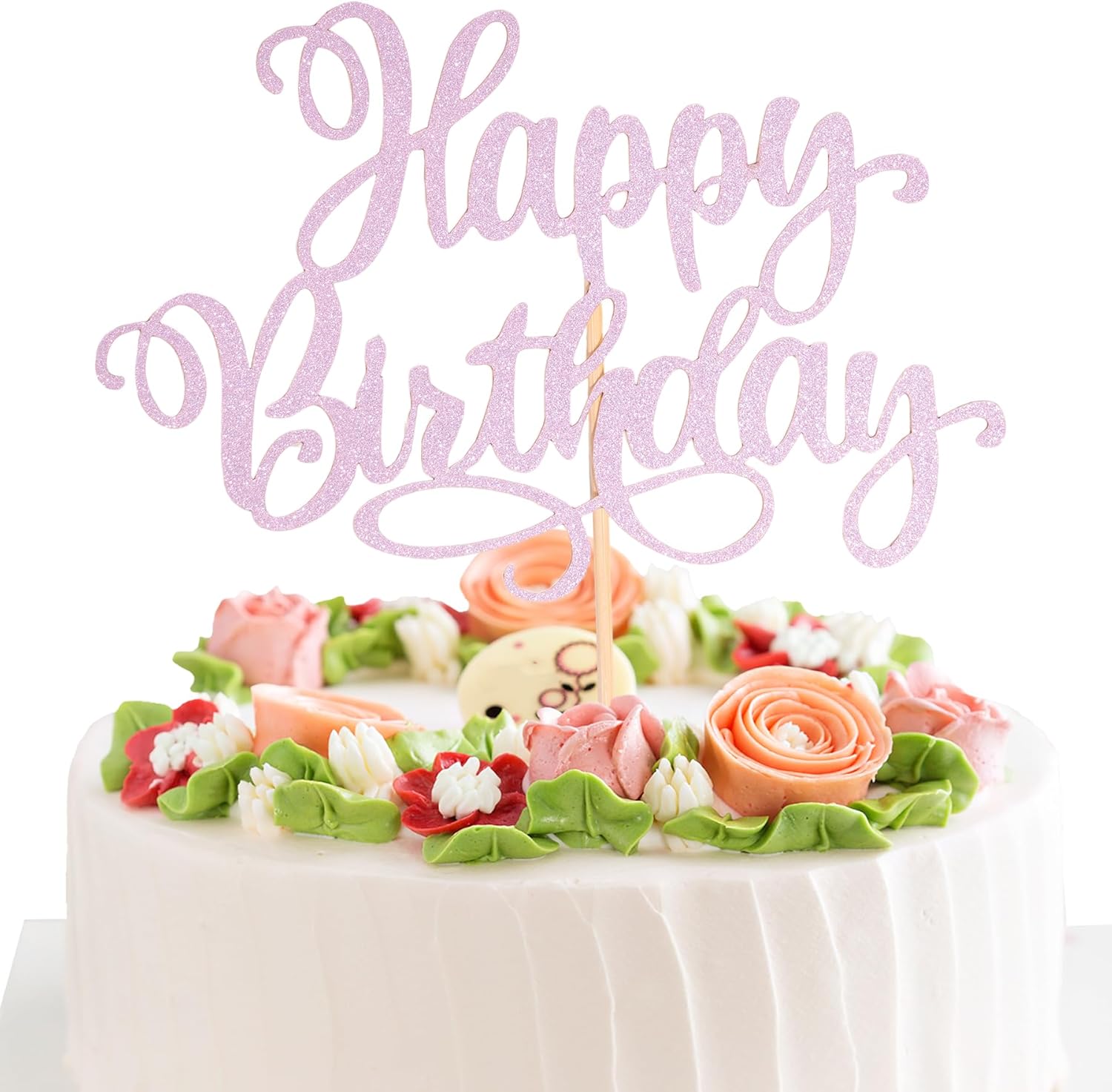 Happy Birthday Cake Toppers 9 Inch Glitter Happy Birthday Cake Toppers Pick for Birthday Anniversary Theme Party Cake Decorations Supplies - Litht Pink