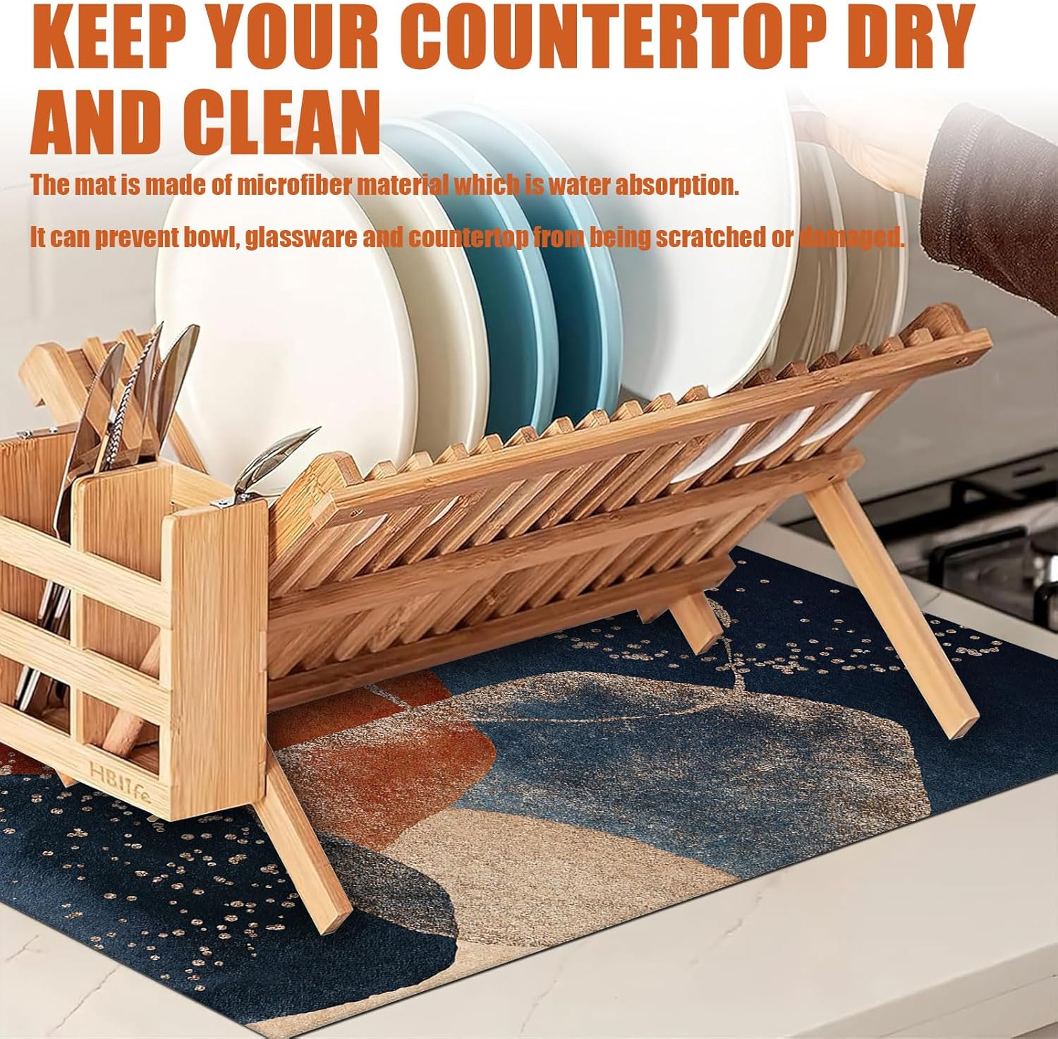 - 【Easy to Clean】The utensil drying mat can be cleaned by hand or machine to remove stains, the kitchen utensil drying mat to dry quickly without a machine. HD printed suede has excellent color lock, does not fade and can be reused many times.