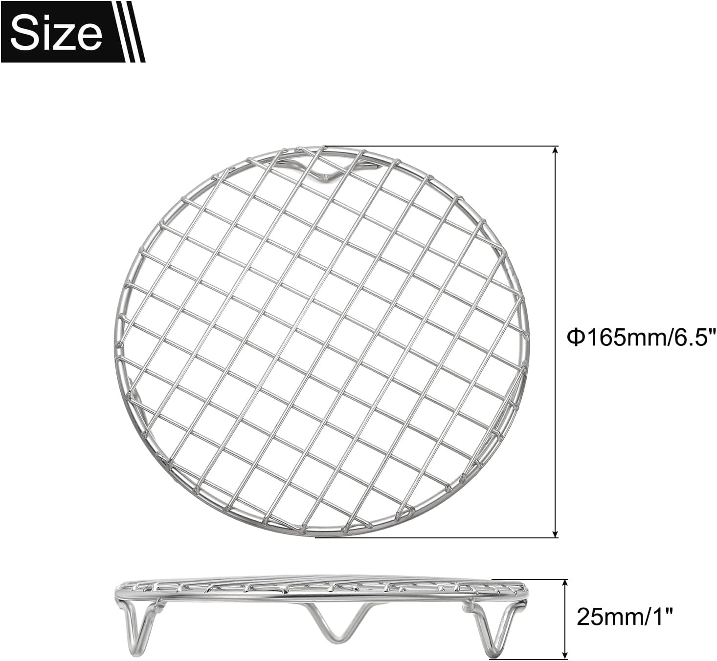 - Package & Size: You will get a round cooking rack, with the diameter is 165mm/6.5 inch, and the height is 25mm/1 inch, which is suitable for home and outdoor use.