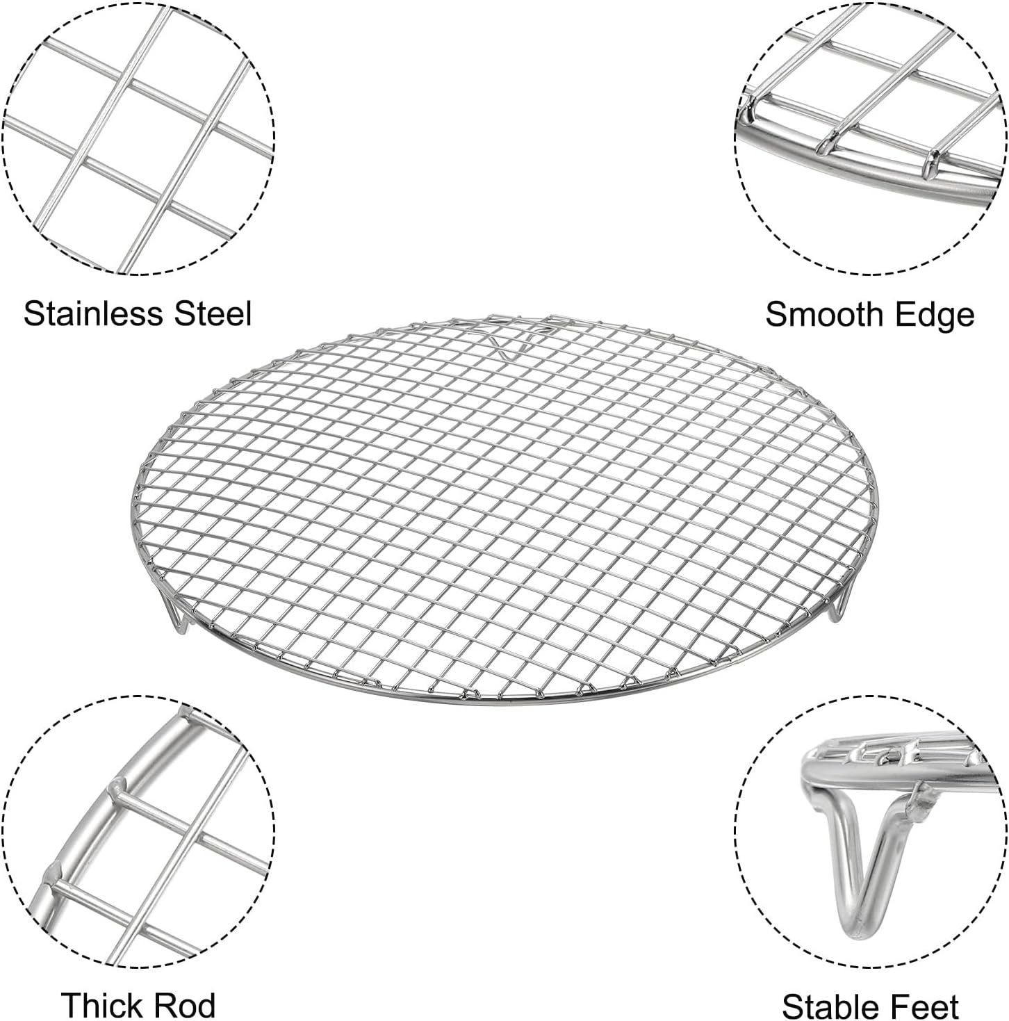 uxcell 2 Pcs Round Cooking Rack with Legs, Dia 12 Inch 304 Stainless Steel Barbecue Grill for Cooking Baking Barbecue Air Fryer Racks, Silver
