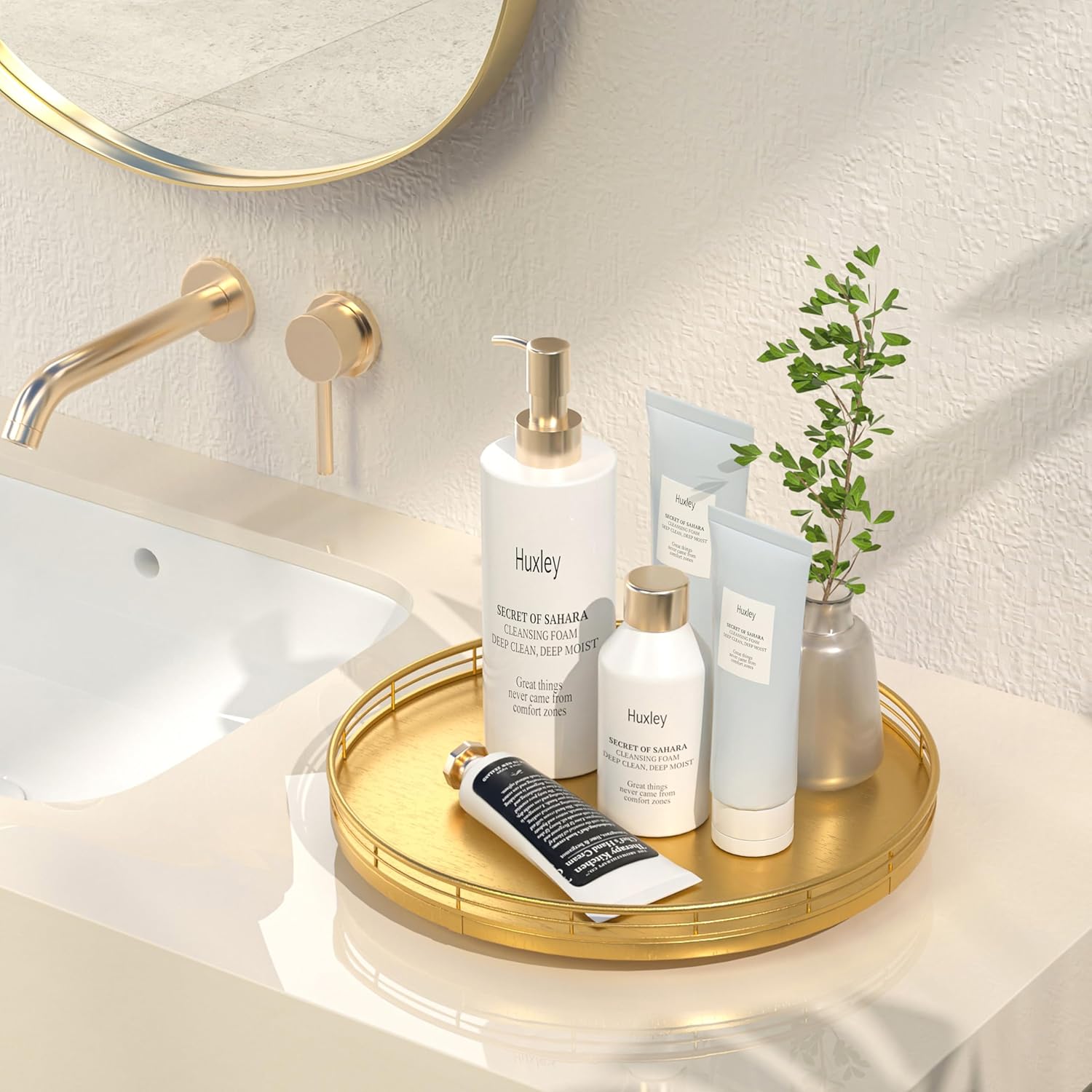 - Multi-Purpose Usage: Perfect for a wide range of occasions and spaces. Whether used as a centerpiece table decorations, a vanity tray in your bathroom, or an organizer on your kitchen, this versatile gold round tray adapts to your needs in any room
