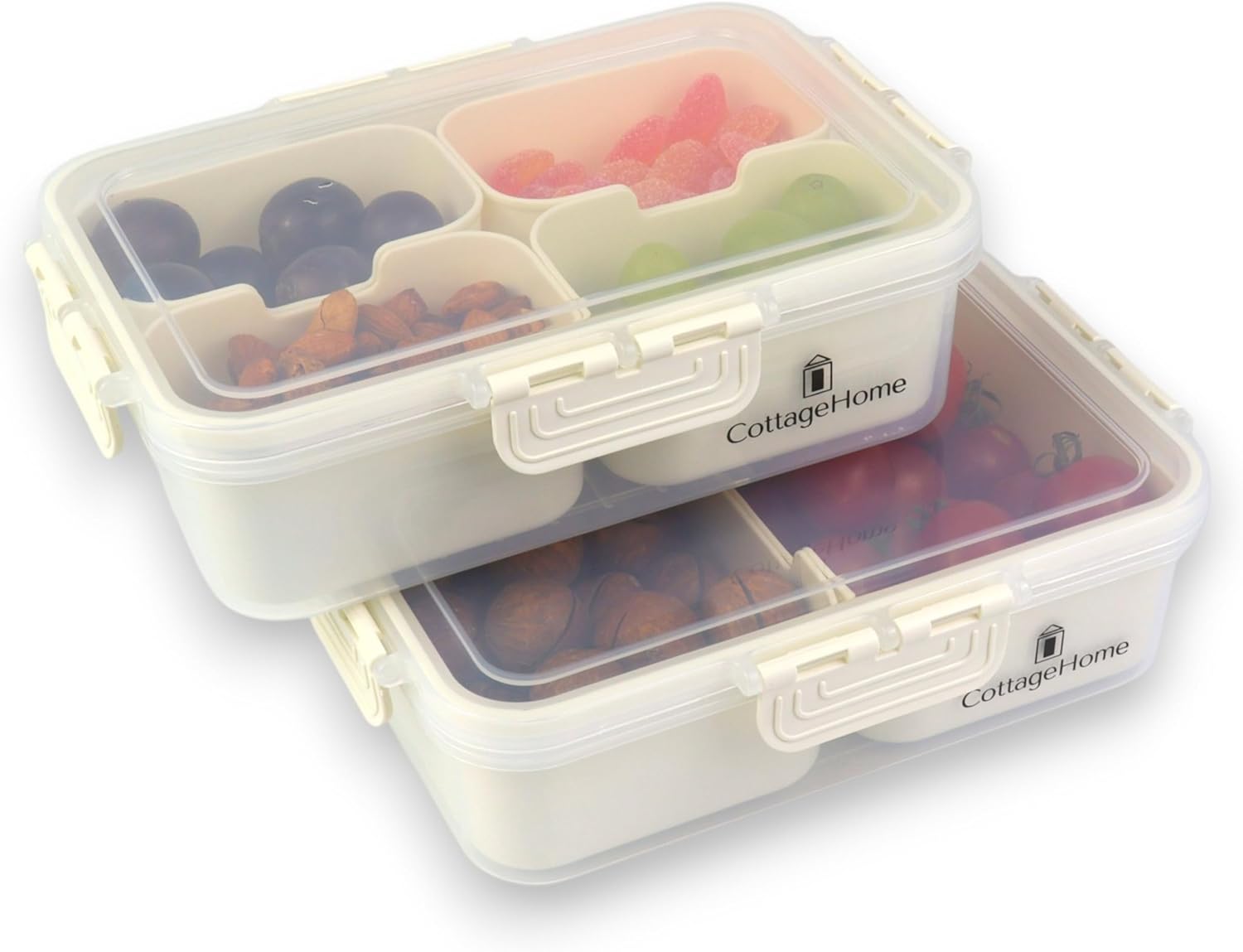- 🔒 Secure Outer Lid, Fresh Food Inside Each box closes with a single secure lid while the inner cups keep snacks separated and visible. No leaks, no mess, just organized snacking.