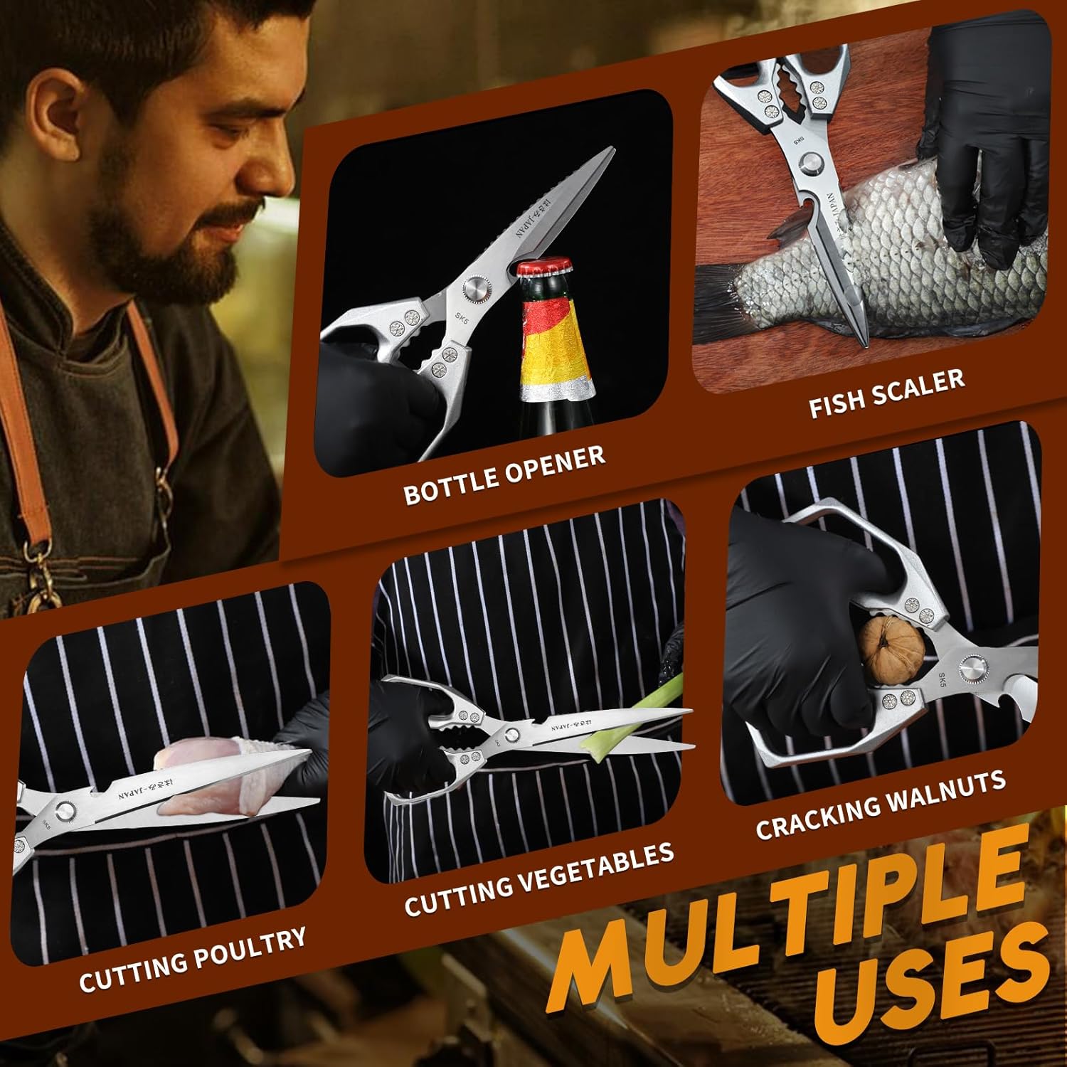 - Professional Extended Design for Multiple Tasks--The upgraded extended blade features a 7-inch cutting edge, delivering greater shear force and a wider working range. Perfect for poultry, thick cardboard, kitchen ingredients, and more—50% more efficient than standard kitchen scissors, saving you time and effort.
