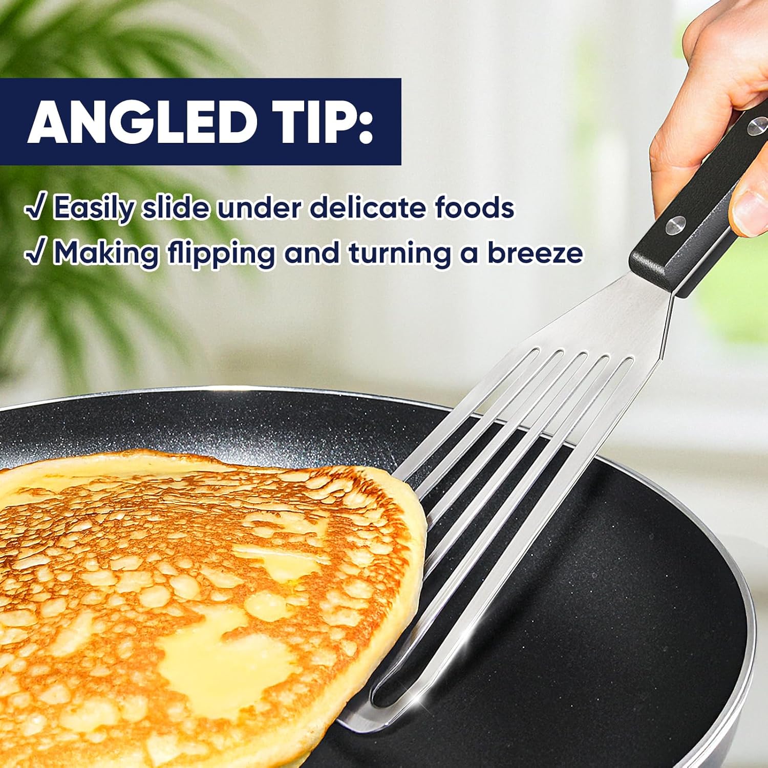 - Multi-Functional – suitable for most applications that require a spatula: flipping pancakes, grilling burgers, cooking scrambled eggs or omelette and removing items from a roasting pan