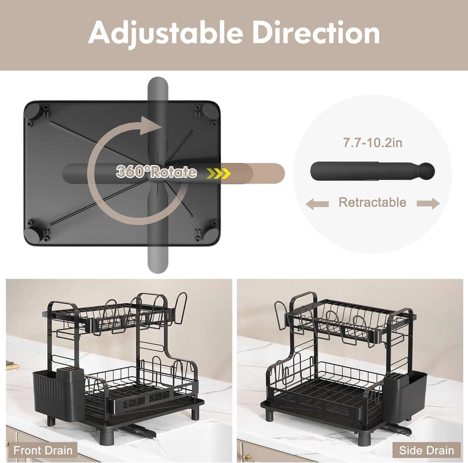 - STURDY AND RUSTPROOF: The Dish dryer rack is made of heavy-duty stainless steel with a nano-coating finish, the black dish drying rack will resist any damage that causes rust, is durable, easy to clean which made to last.