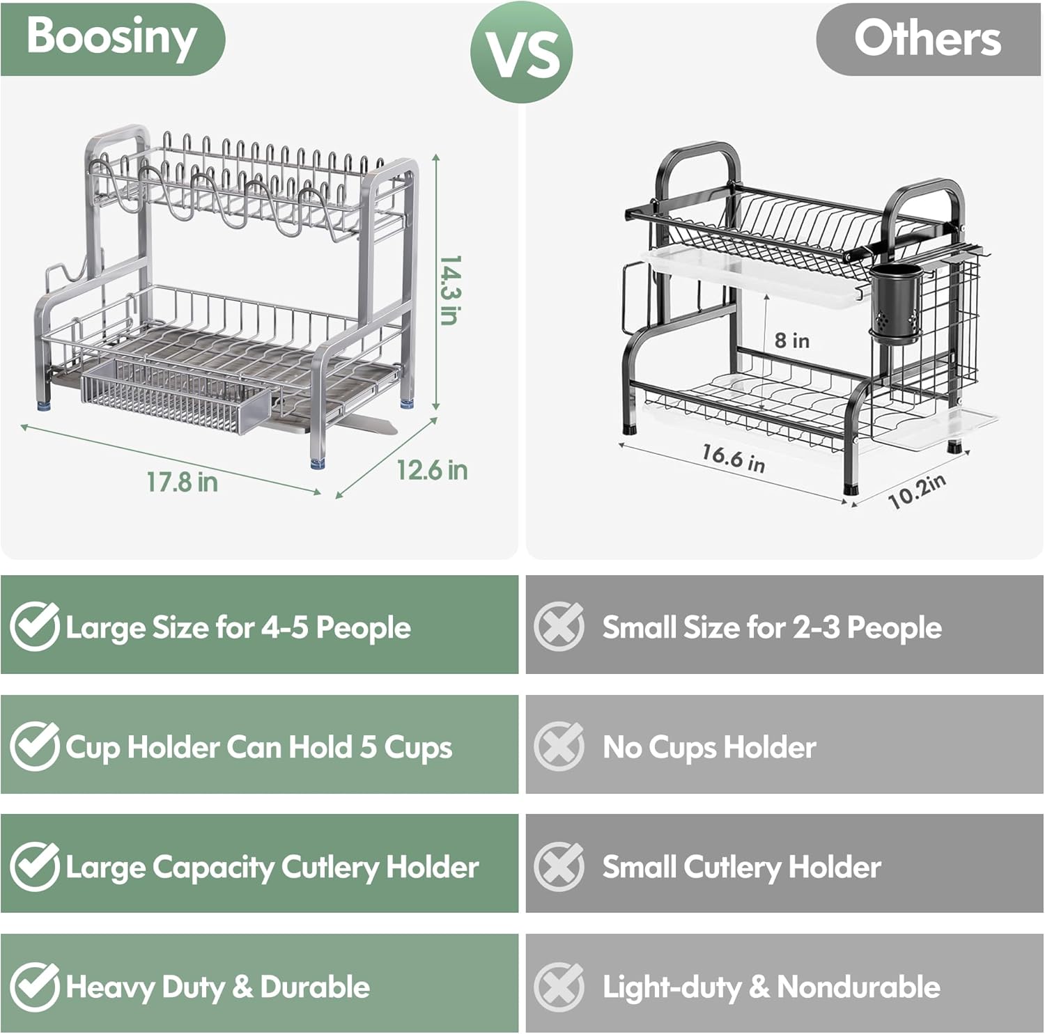 - 📐Space Smart Vertical Design: Extra large dish racks for kitchen counter in tall two tier format. Minimizes footprint while accommodating 2 tier dish drying rack for kitchen counter loads better than single tier alternatives
