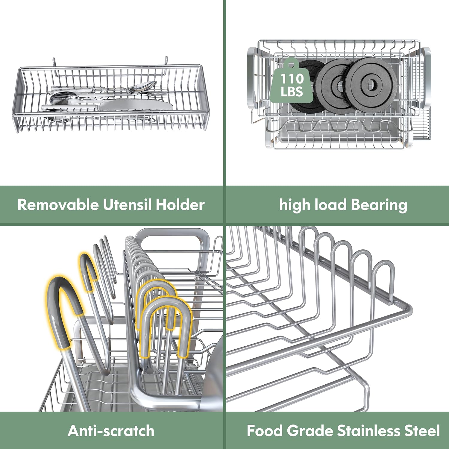 - 🛡️Rust Proof Stainless Steel Construction: Rust proof dish drying rack with all-steel racks,cup holders,utensil holder. Engineered stainless steel dish racks for kitchen counter that withstands daily moisture while maintaining long-lasting durability