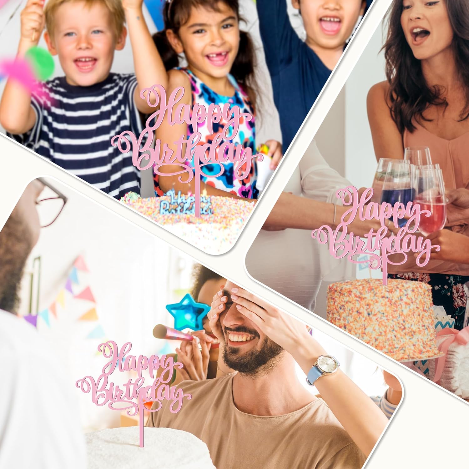- Package Includes: Each set includes 1 PCS 5.1 IN x 6.5 IN acrylic Happy Birthday cake topper in a soft pink color with adjustable depth to fit any shape of cake.