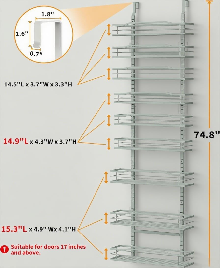 - Maximize Your Space: Our 9-Tier over the door pantry organizer is designed to make the most of your storage space, allowing you to store more items in a smaller area such as spice and some jars. Perfect for small kitchens or those with limited storage space.
