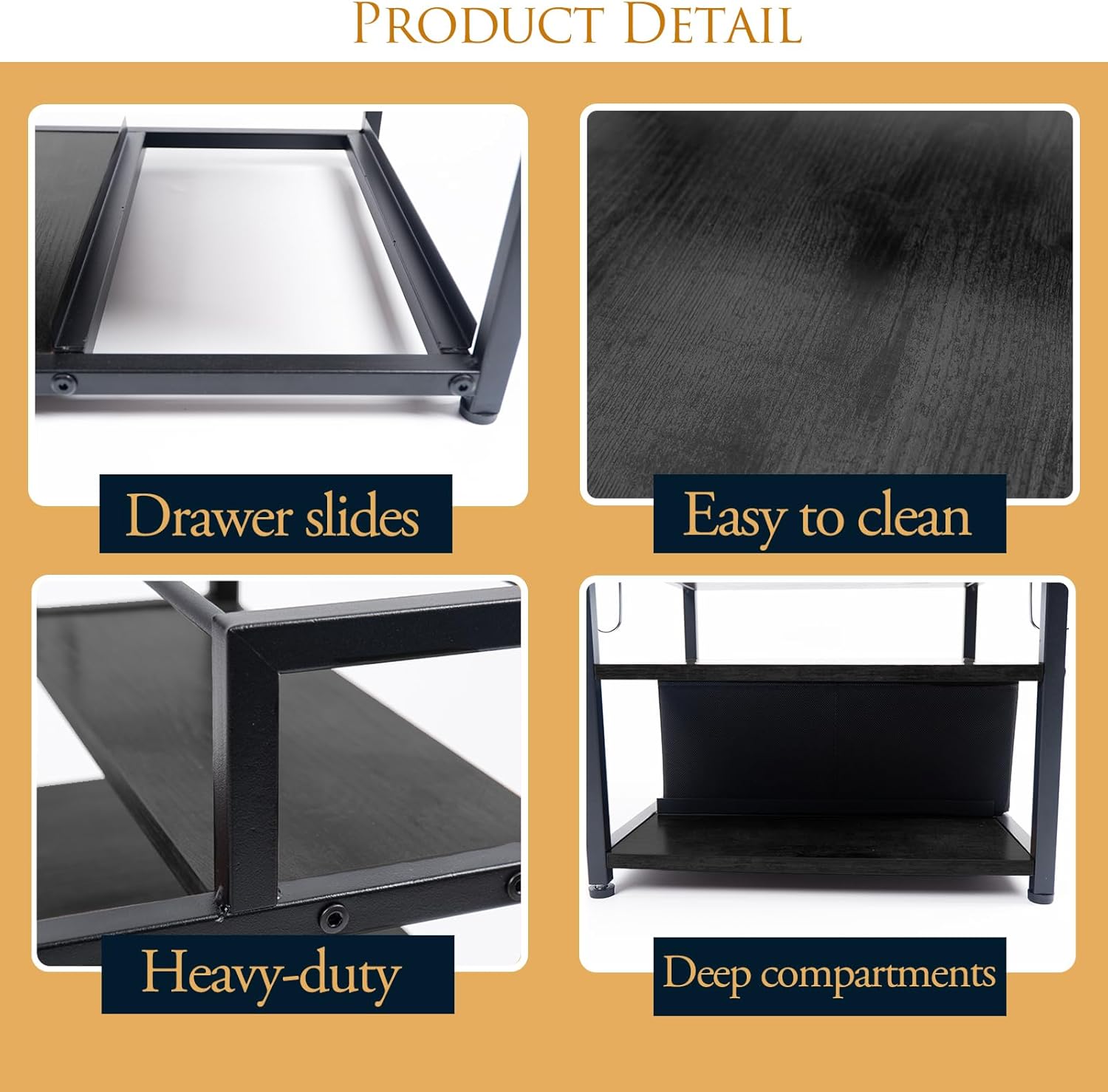 - New features: Our liquor bottle rack features a hidden fabric drawer on the side and a small bottle storage compartment at the bottom, making your coffee rack more tidy and aesthetically pleasing.