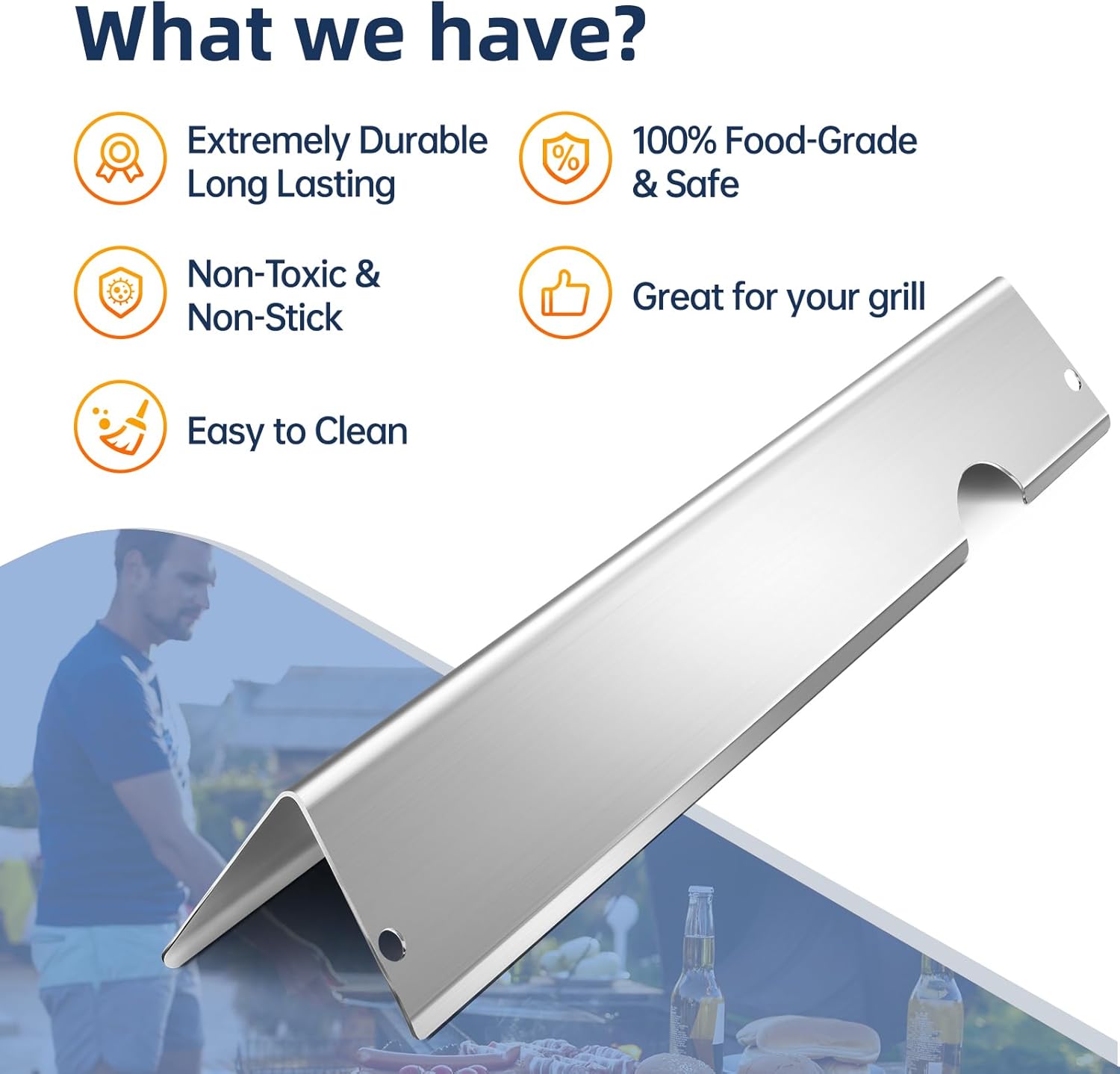 - 【Heat Evenly & Easy to Clean】Our genesis 2 grill parts are made with heavy duty 304 stainless steel to ensure long lasting use which can distribute heat evenly across entire surface. The heat deflector not only heat evenly and retain heat superbly but also deliver professional searing able to produce prominent sear marks and make the food more flavorful. After using the cooking grill parts, just use a grill scrubber and put it into water to soak, very easy to clean.