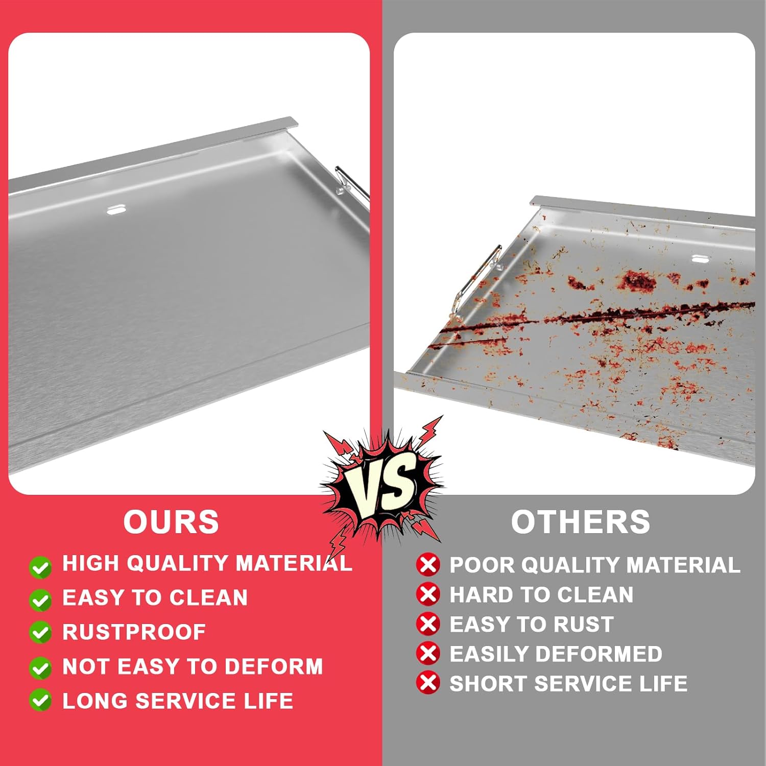 - Rustproof & Durable: Master outdoor cooking with the stainless steel griddle plate for Ninja Woodfire Flex Flame Grill -- a must-have for Ninja Flex Flame Grill accessories. Crafted from higher quality stainless steel, Rust-resistant surface treatment, and can perfectly withstand high temperatures, grilling, or pancake flips. Perfectly sized for Ninja Woodfire grills, it's the ultimate rust-proof companion for campfires, BBQs, or backyard feasts.