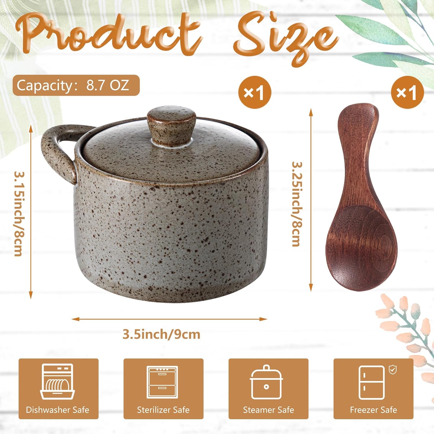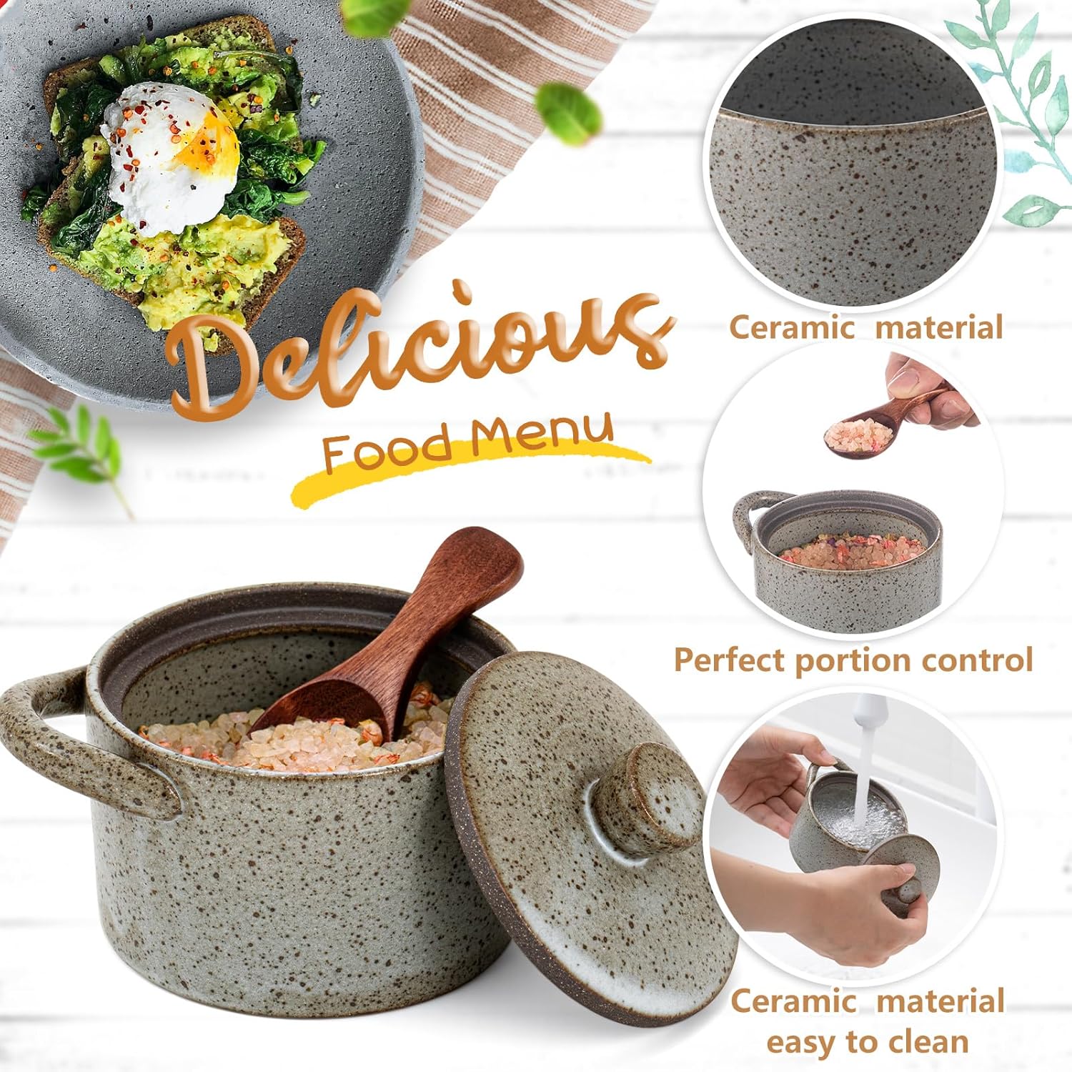- Reliable Materials: salt bowl with lid is crafted from ceramic, complemented by a sturdy wooden lid, this durable piece promises longevity; Its robust build ensures resistance to daily wear and tear, making it a reliable choice for your spice storage needs