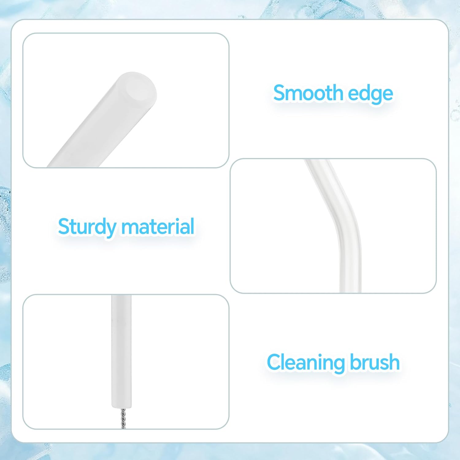 12 Pcs Reusable Glass Straws 8"x 8 mm Bent Glass Drinking Straws with Cleaning Brush for Tea, Smoothies, Milkshakes, Juices,Beverages(White jade)