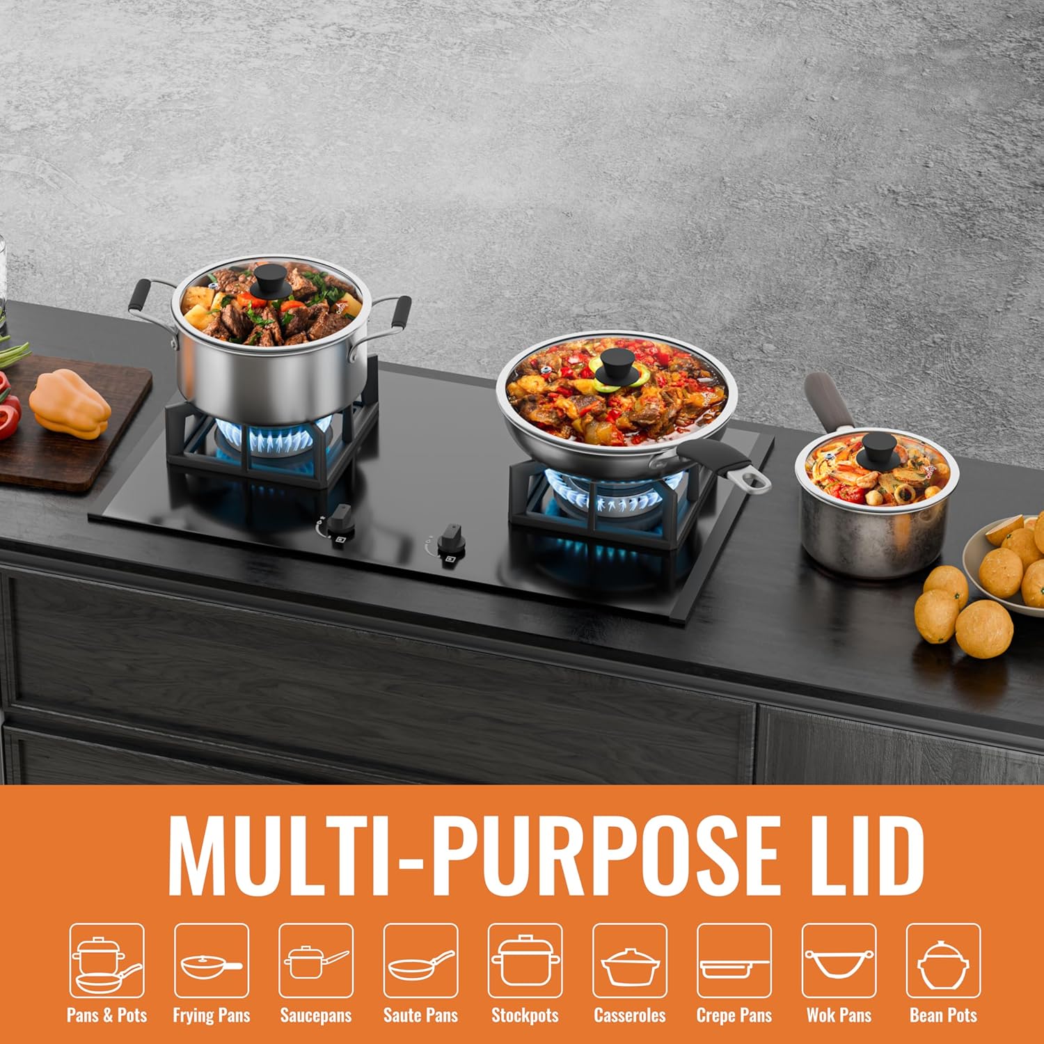 - STRONG HD TEMPERED GLASS: With premium high-definition and strong tempered glass, this durable glass lid for pots and pans ensures even heat distribution and withstands high temperatures. Perfect for pots and pans, it offers a clear view of your cooking without lifting.