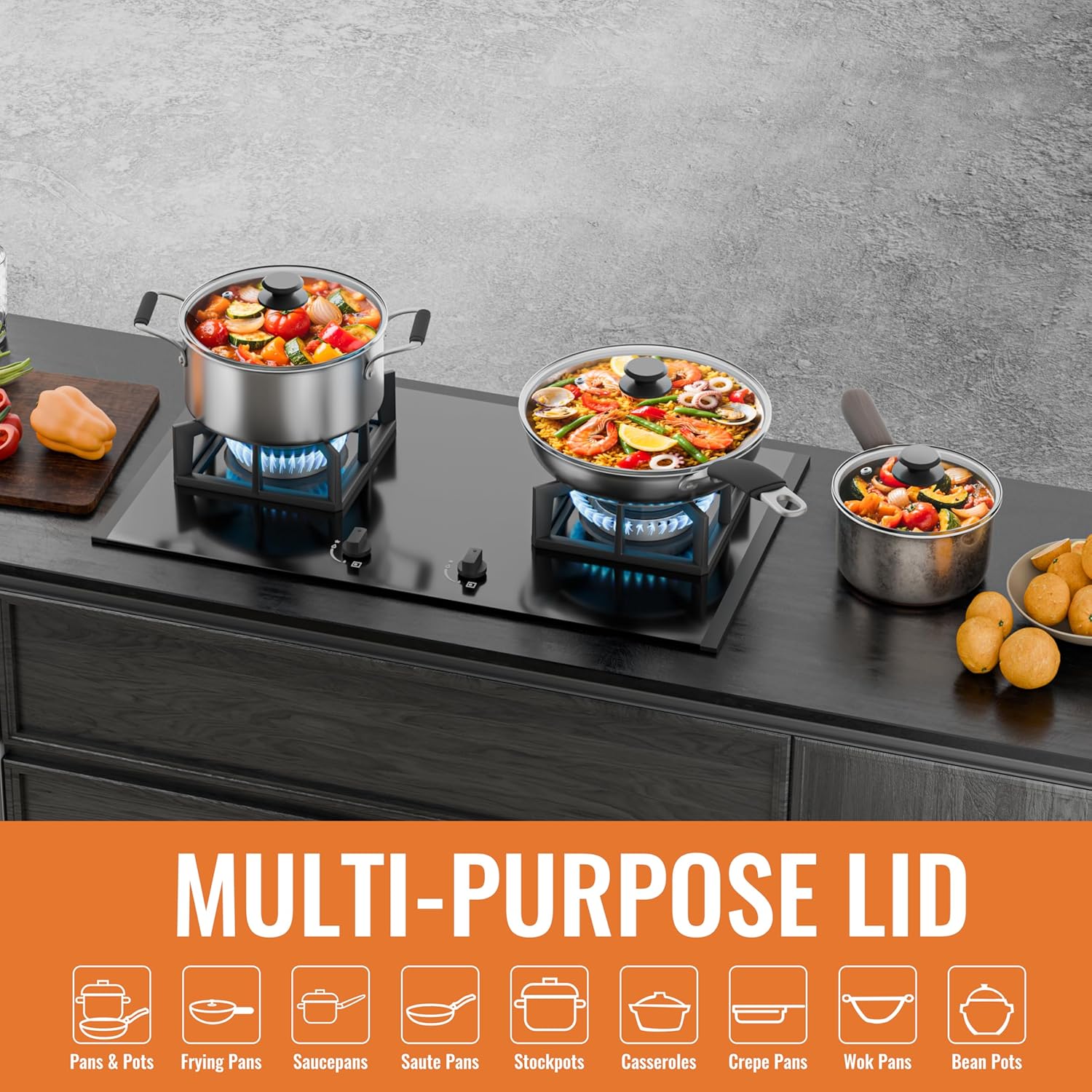 - PREMIUM HD TEMPERED GLASS: With high-definition tempered glass, this durable glass lid for pots and pans ensures even heat distribution and withstands high temperatures. Perfect for pots and pans, it offers a clear view of your cooking without lifting.