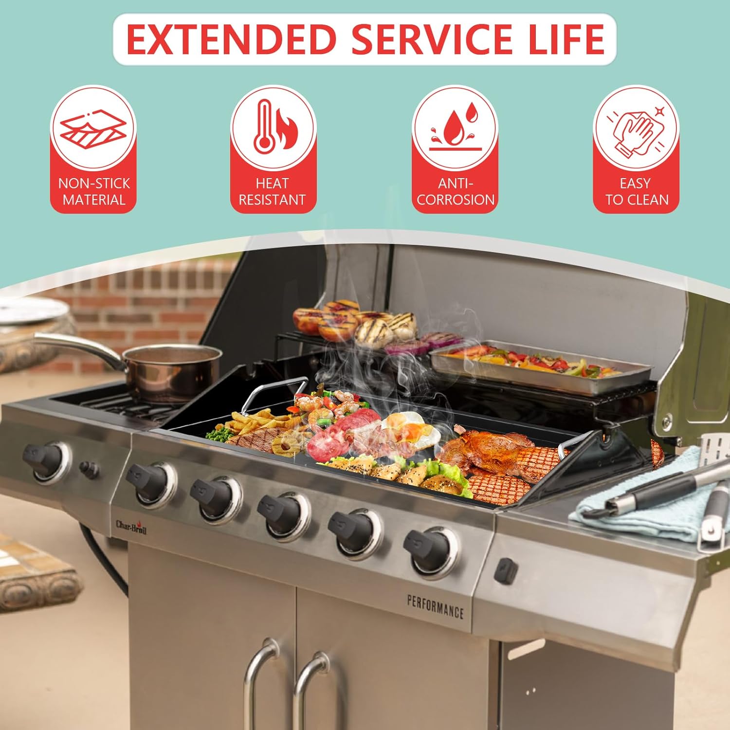 - Great for Various Setups: Griddle insert for gas grill easy to install and operate. Strategically designed raised edges. These raised barriers provide reliable protection to hold ingredients securely on the cooking surface. No more worrying about vegetables rolling off during a quick sauté or sauce spilling over the surface when searing a steak!
