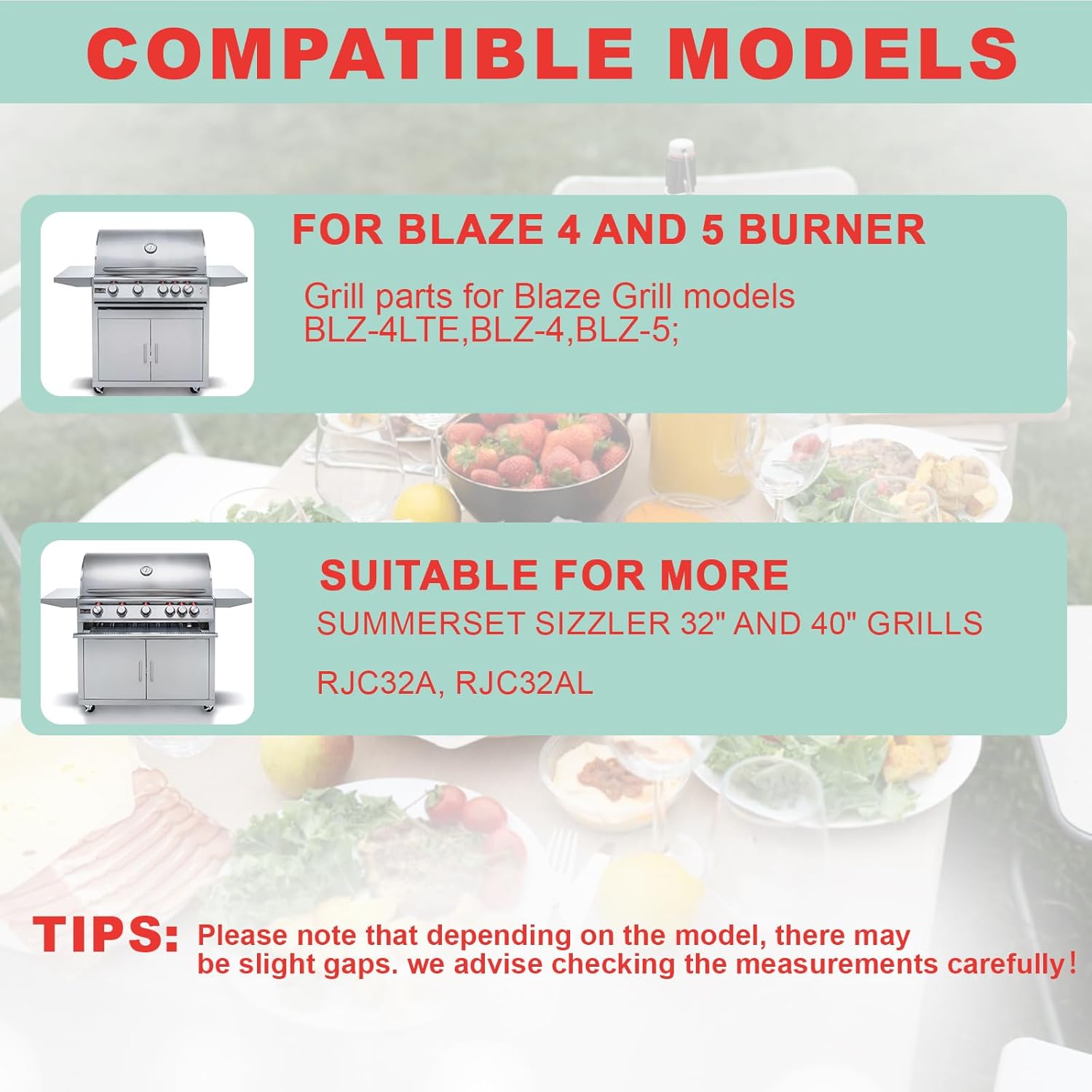 - Compatibility: Designed for Blaze Grill 4/5 Burner Natural Gas Grill, grill parts for Blaze Grill models BLZ-4LTE,BLZ-4,BLZ-5; grill top griddle fits for Blaze Grill ; Compatible with Summerset Sizzler 32" and 40" grills; Fits for RCS 32" grills,griddle insert for RCS models RJC32A, RJC32AL; bbq grill parts for blaze grill.Griddle insert for AOG grill parts;
