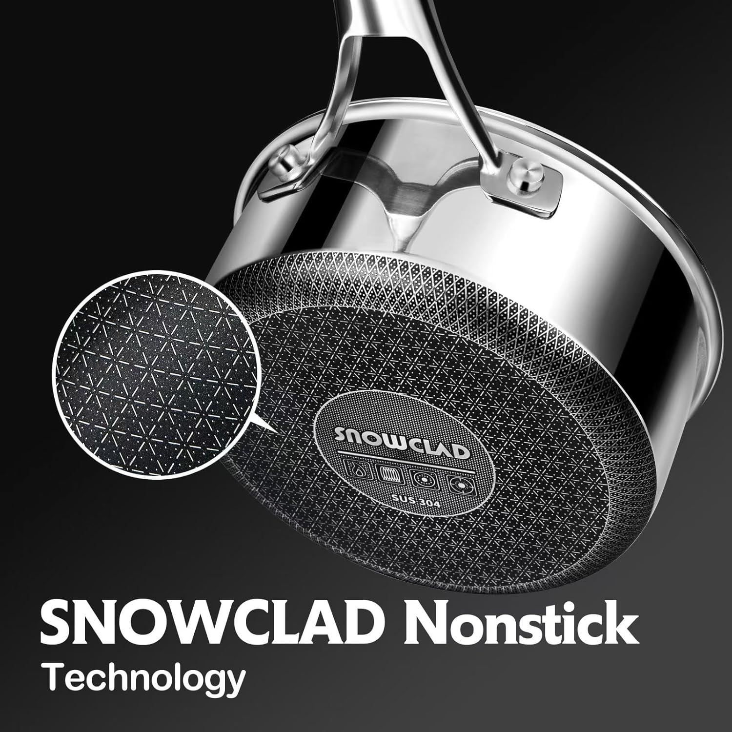 - [SNOWCLAD ENHANCED TECH]: Featuring a cutting-edge enhanced nonstick coating with a snowclad surface design, our non stick frying pans offers longer-lasting, superior non-stick performance. No more worries about peeling or flaking—this set offers exceptional durability and is designed to withstand the use of metal utensils. Additionally, our clad surface is 50% larger than that of typical hex pans.