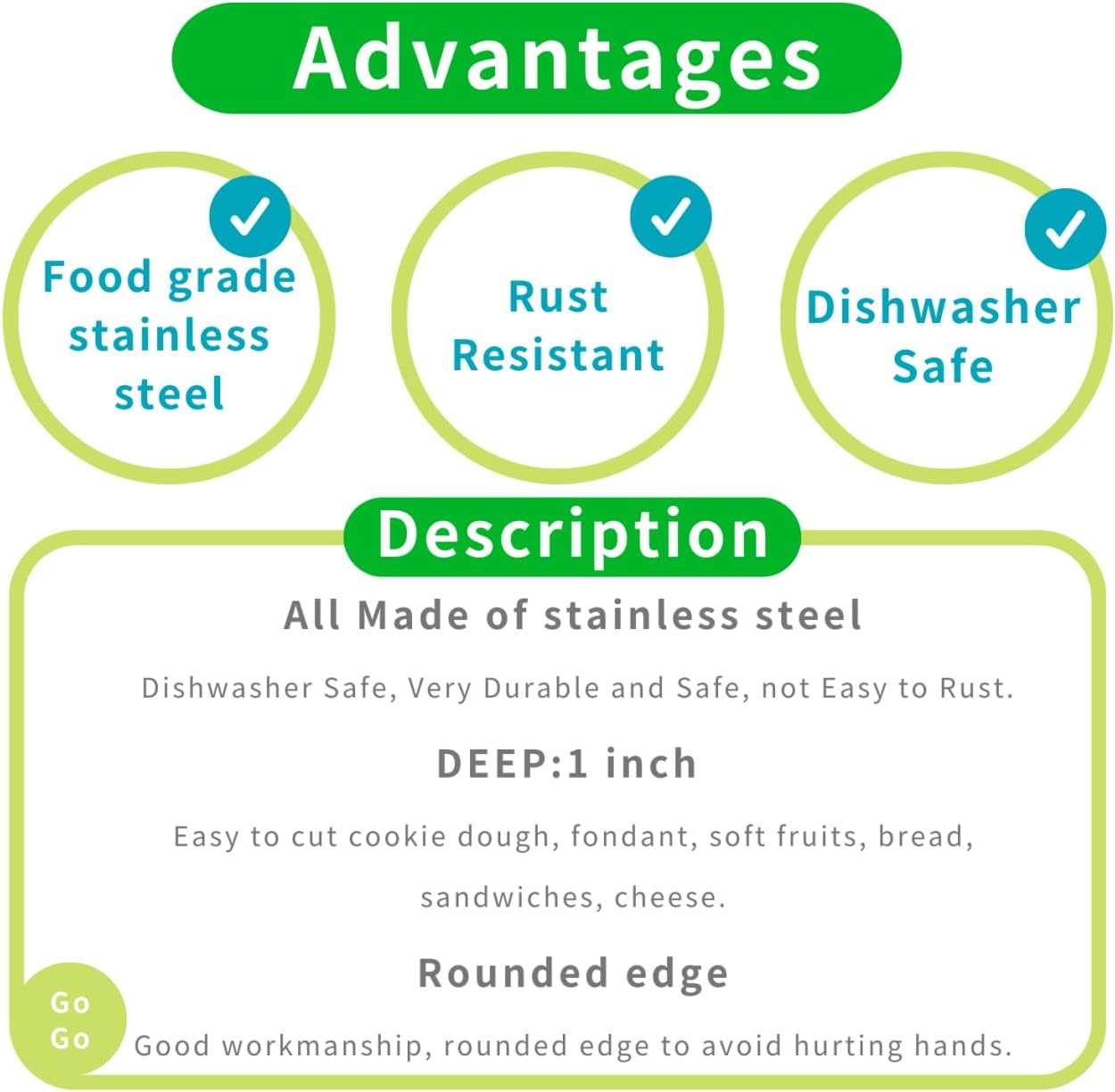 - Deep 1-Inch Design for Precision Cutting--- Cuts cleanly through cookie dough, fondant, soft fruits, and sandwiches. Rounded edges protect hands, while the sturdy design prevents bending.