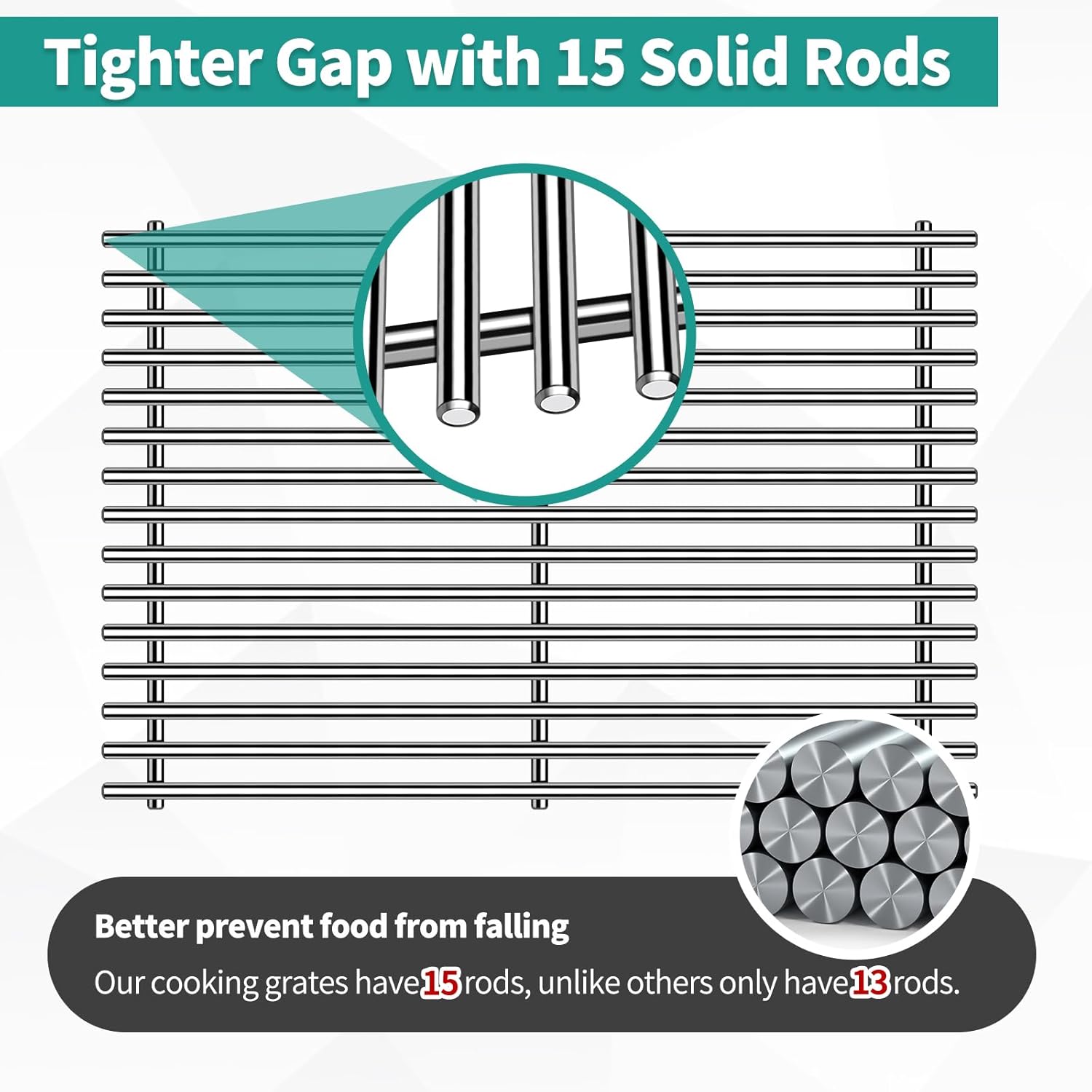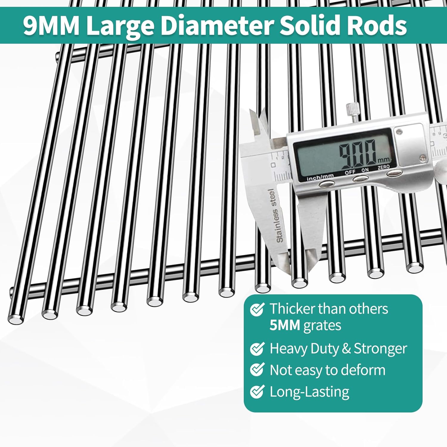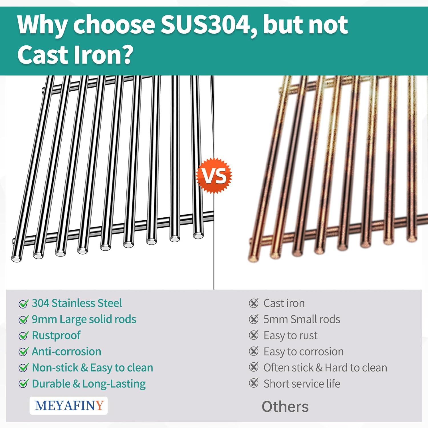 - 【9MM Diameter Solid Rods】Thickness of Meyafiny cooking grate is 9mm, more thicker and stronger than other 5mm/ 7mm grill grates. Our barbecue cooking grids feature SUS304 thicken solid rod bars, which are not easy to deform and more durable for long time using.