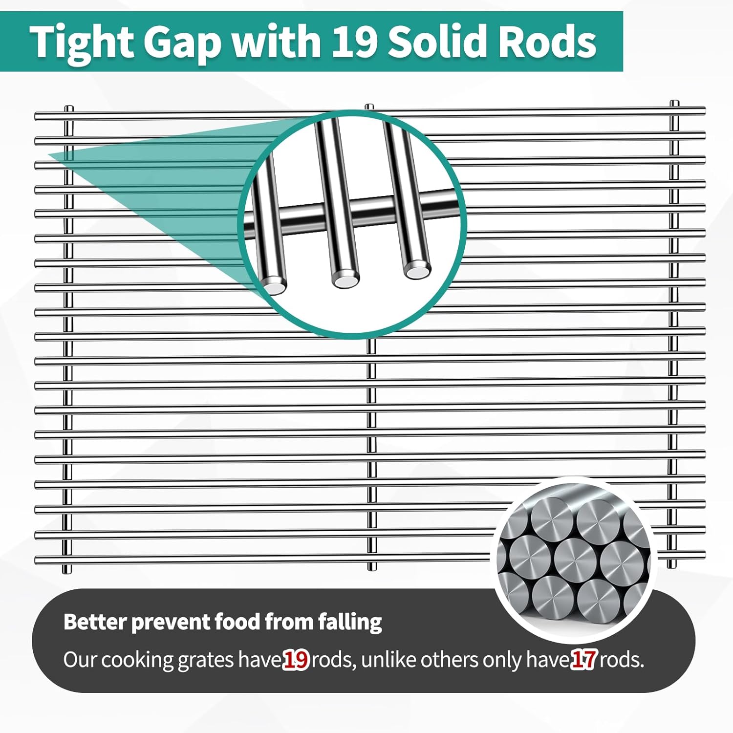 18 7/8" 304 Stainless Steel Grill Grates for Weber Genesis ii E-610 S-610 Genesis ii LX E-640 S-640 Genesis 2 Grill Parts for Weber Genesis ii 600 Series 66803 66096 Gas Grills 3 Pack