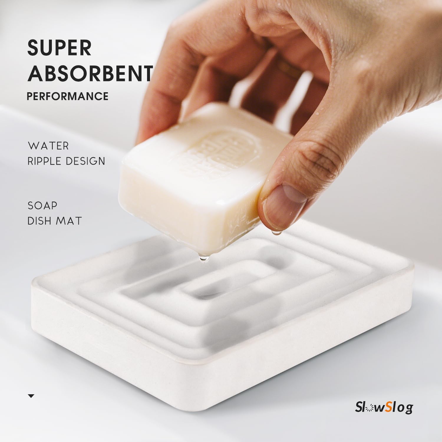- Multi-Functional Use: This diatomite soap tray works perfectly in any wet area-The absorbent mat securely holds various items like soap, toothbrushes and kitchen tools, Ideal for bathroom vanities, kitchen counters,helping maintain an orderly and dry surface in any living space