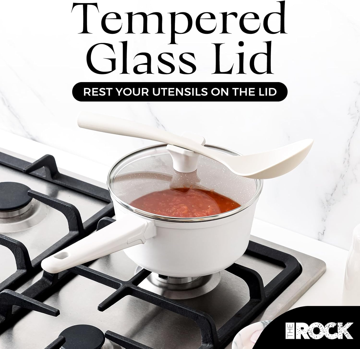 THE ROCK SOHO Ceramic Nonstick Saucepan with Lid, 2 Quarts Non Toxic Small Pot with PPG Fusion Pro Coating–Nothing Sticks, Never Warps, Lasts Longer, Induction Compatible, PTFE, PFOA&PFAS Free, Cream
