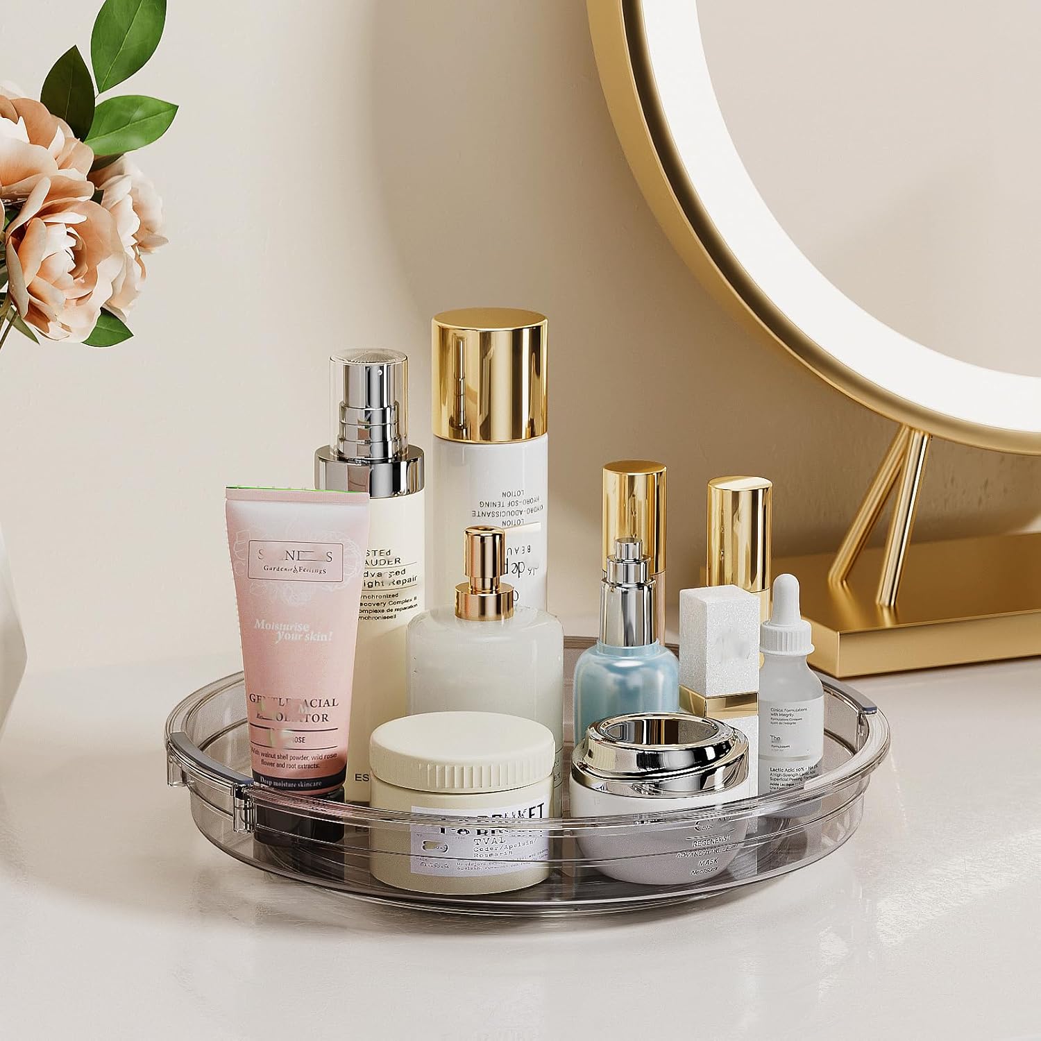 - Versatile Use and Space Saving: This Lazy Susan turntable is great for cabinet, kitchen countertop, fridge and pantry organizers and storage spices, condiments, snacks, cans. It's also a medicine cabinet organizer, bathroom makeup perfume spinning organizer. Elevates the functionality and efficiency of every space